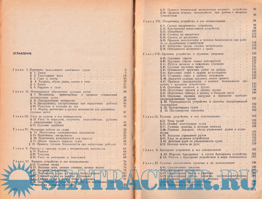Год выпуска: 1975 Язык: Русский Автор: Дамаскин А. М., Крысак М. С. Жанр: Учебное пособие , Морское дело Издательство: Транспорт (Москва) Издание: 1 Формат: PDF Качество: Отсканированные страницы + OCR с ошибками Количество страниц: 139 Описание: «Учебное пособие для матроса и боцмана», изданное в 1975 году издательством «Транспорт», представляет собой фундаментальный практико-ориентированный труд, предназначенный для подготовки рядового палубного состава морских судов. Книга охватывает полный круг обязанностей матроса и боцмана в процессе технической эксплуатации транспортного судна. В пособии подробно рассматриваются вопросы морской практики, такелажного и якорного снабжения, швартовных и грузовых операций, ухода за судном, выполнения малярных работ, эксплуатации рулевого и буксирного устройств. Значительное внимание уделено спасательным и сигнальным средствам, организации аварийно-спасательных работ, борьбе за живучесть судна, противопожарной защите и технике безопасности. Отдельные главы посвящены особым условиям плавания — штормам, обледенению, льдам, посадке на мель и спасанию людей на море. Материал изложен системно, сопровождается иллюстрациями и нормативными требованиями. Пособие предназначено для учащихся мореходных школ, профессионально-технических училищ и учебно-курсовых комбинатов, а также представляет практическую ценность для действующих матросов и боцманов морского флота. Доп. информация: Нашел на чердаке, решил отсканировать и поделиться с вами, может кому будет полезно. К сожалению несколько листов были погрызаны мышами, но не критично. Разрешение скана 300dpi, обрезаны поля, выровнены листы, наложен OCR с ошибками