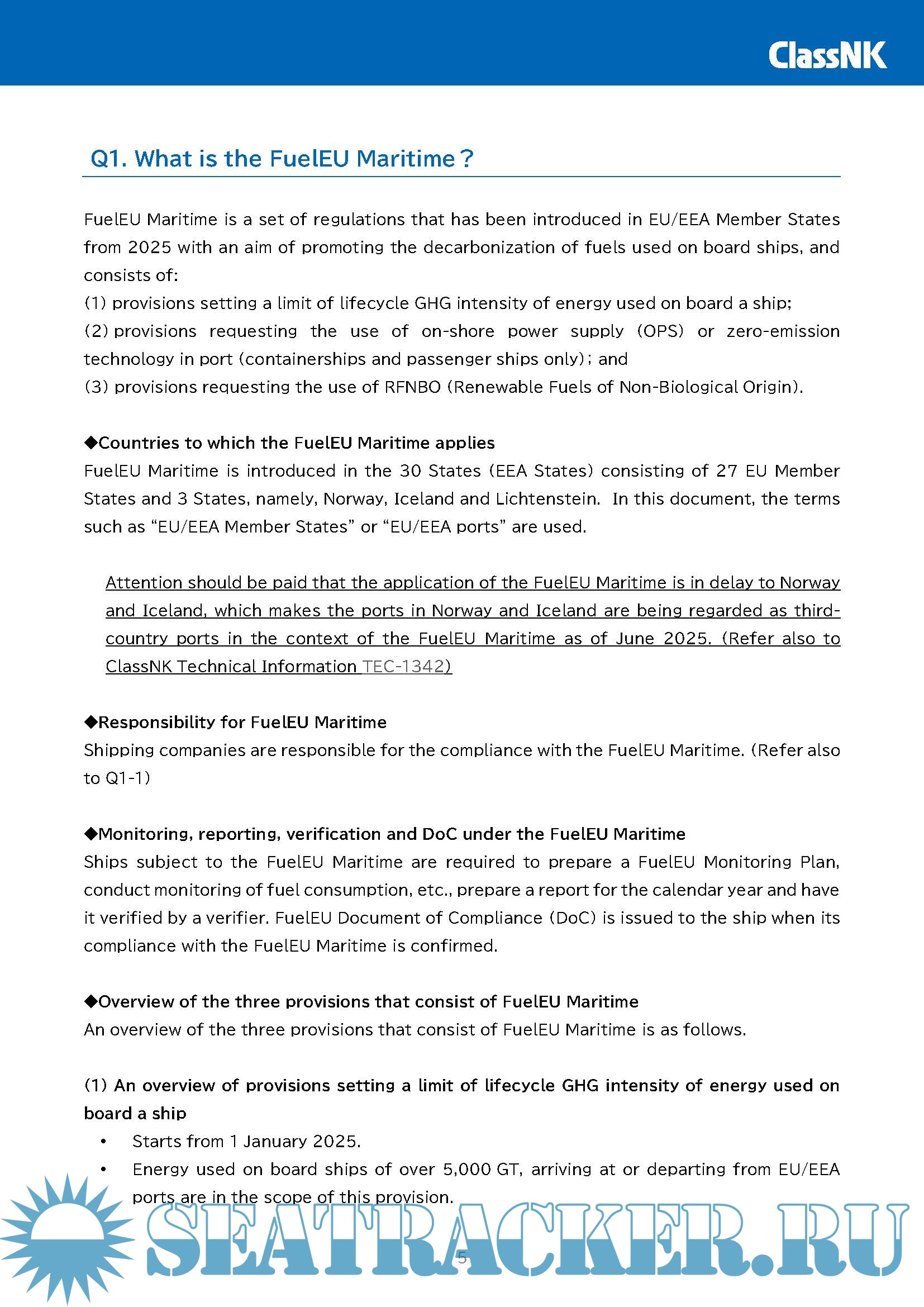 In this “FAQs on the FuelEU Maritime (4th Edition)”, ClassNK has updated several sections reflecting the latest clarifications from EMSA’s webinar and the Guidance Document, including the following points*: