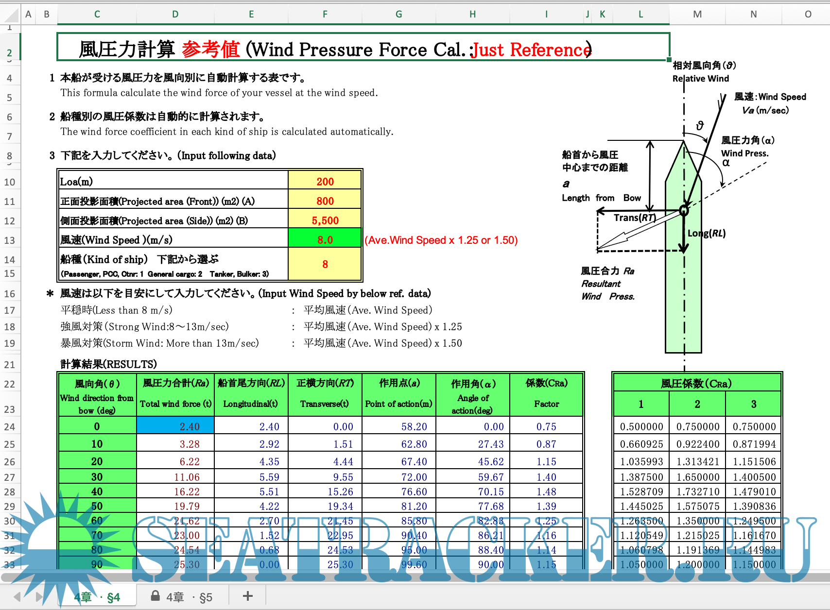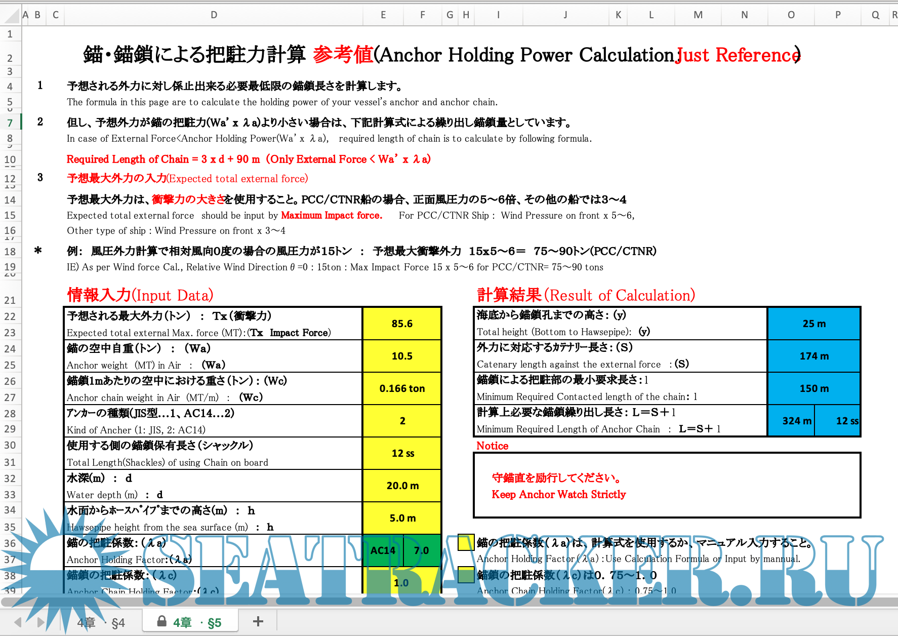 Anchoring Holding Power Calculation - Japan P and I / loss and prevention [2025, XLSx]