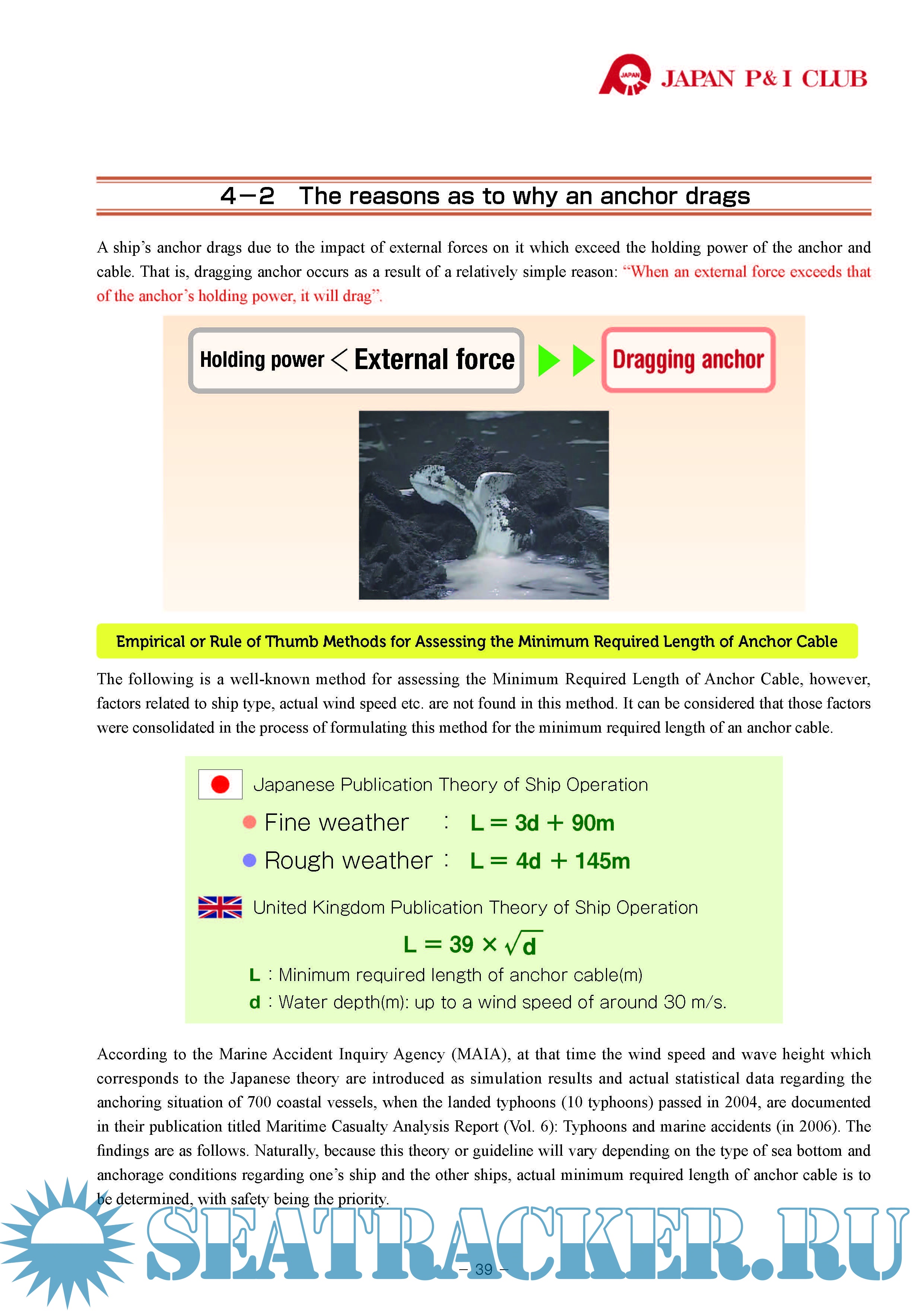 Dragging Anchor - Case Studies and Preventive Measures - Japan P&I [2018, PDF]