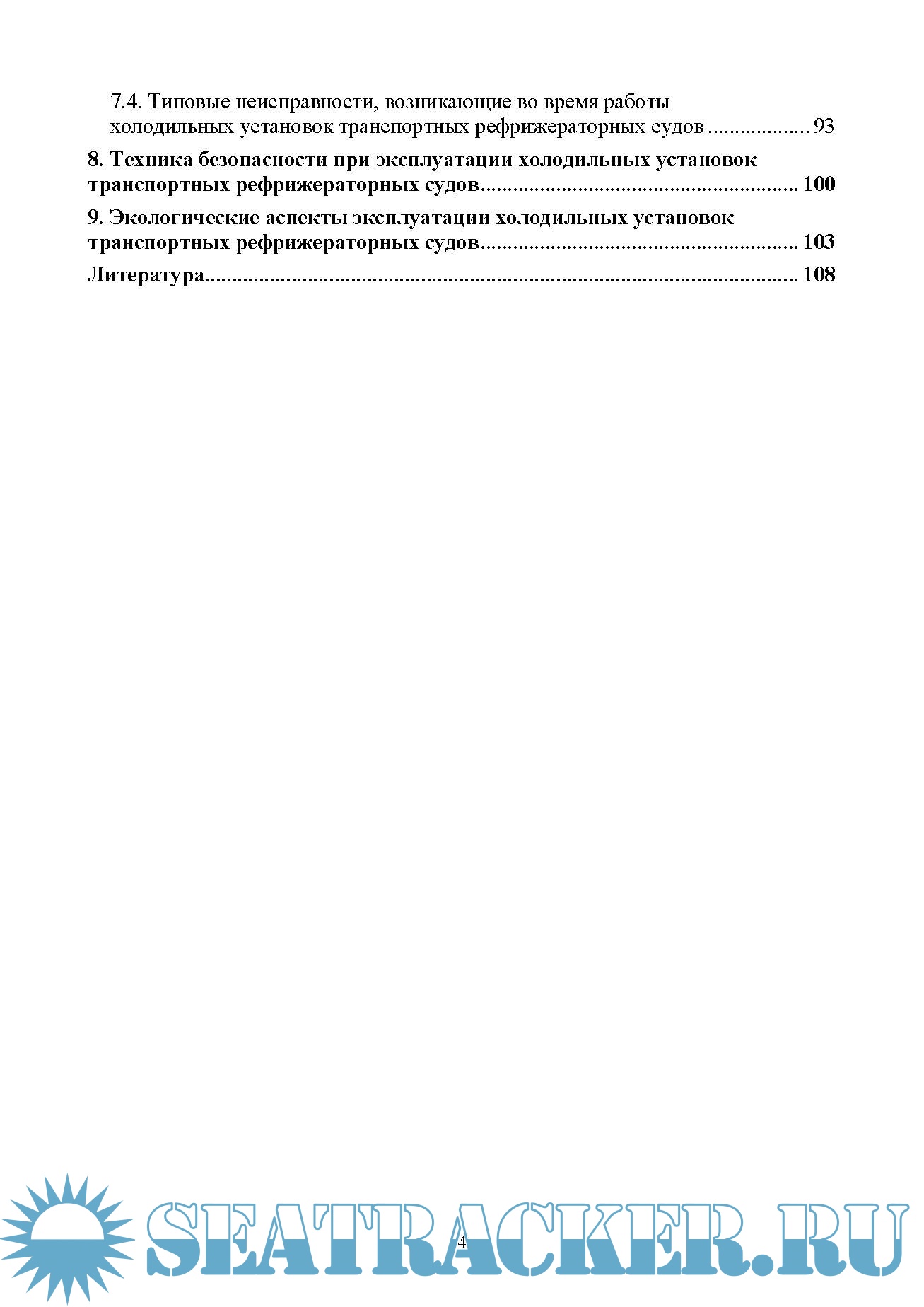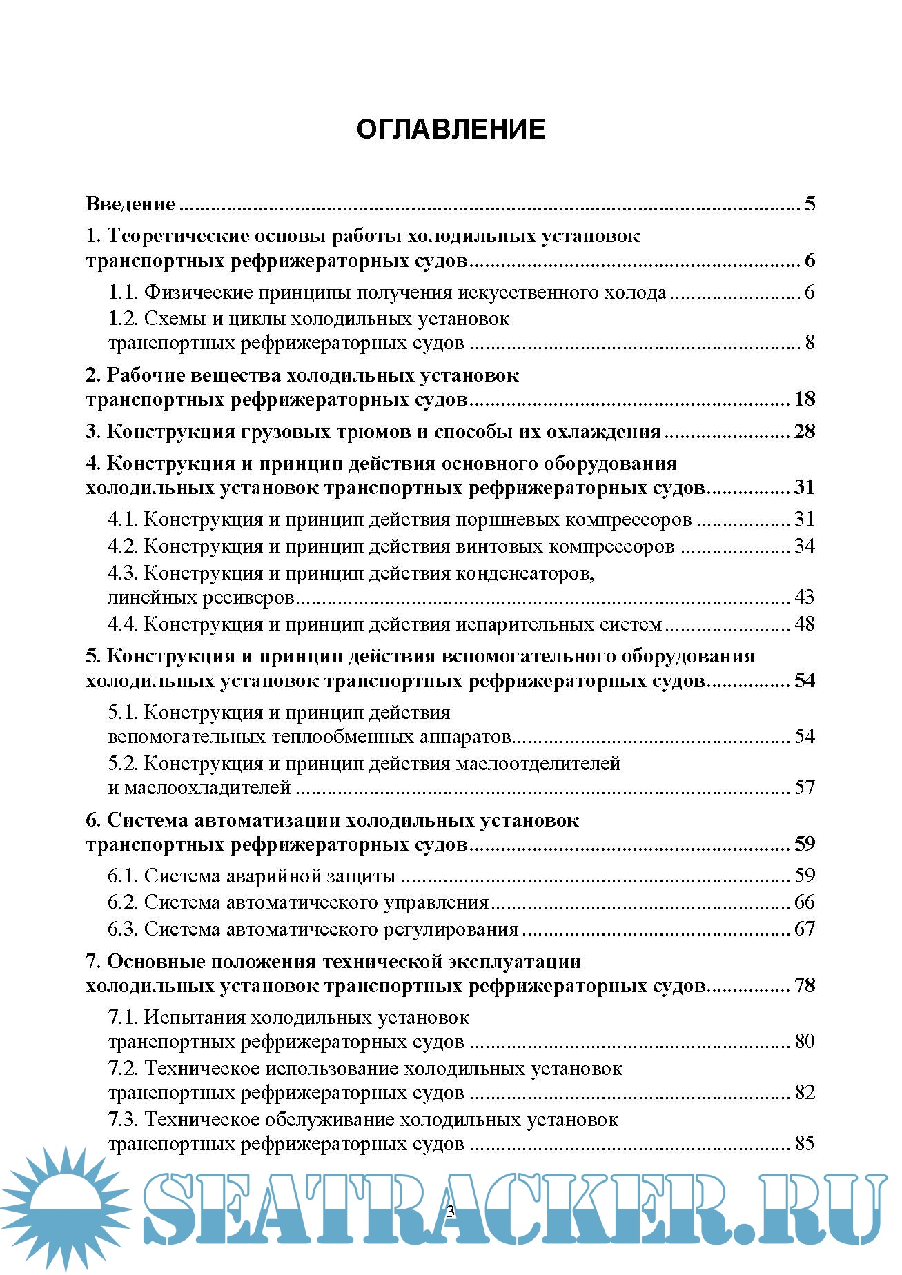 В данном пособии рассматриваются теоретические основы работы производственных холодильных установок транспортных рефрижераторных судов, способы охлаждения грузовых трюмов, конструкция и принцип действия основного и вспомогательного холодильного оборудования, а также системы их автоматизации и основы технической эксплуатации. Вопросы технического обслуживания и возникающих неисправностей в работе конкретного холодильного оборудования рассматриваются в соответствующих разделах учебного пособия. Также приводится основная терминология по судовым холодильным установкам на русском и английском языках.