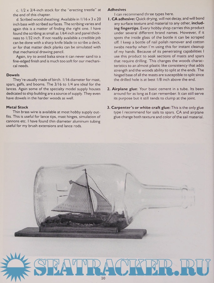 Year: 2000 Language: English Author: Ships in Bottles Genre: Manuals Format: PDF Quality: Scanned pages Pages count: 68 Description: For less than the price of this book, a reasonable model of a ship in a bottle can be made. Five projects of graduated difficulty are explained clearly step-by-step through drawings, black and white, and color photographs. Woven into the instructions is historical background giving the ships and bottles greater interest and authenticity. Guy De Marco leads the modeler slowly through the steps to create this legendary art form.