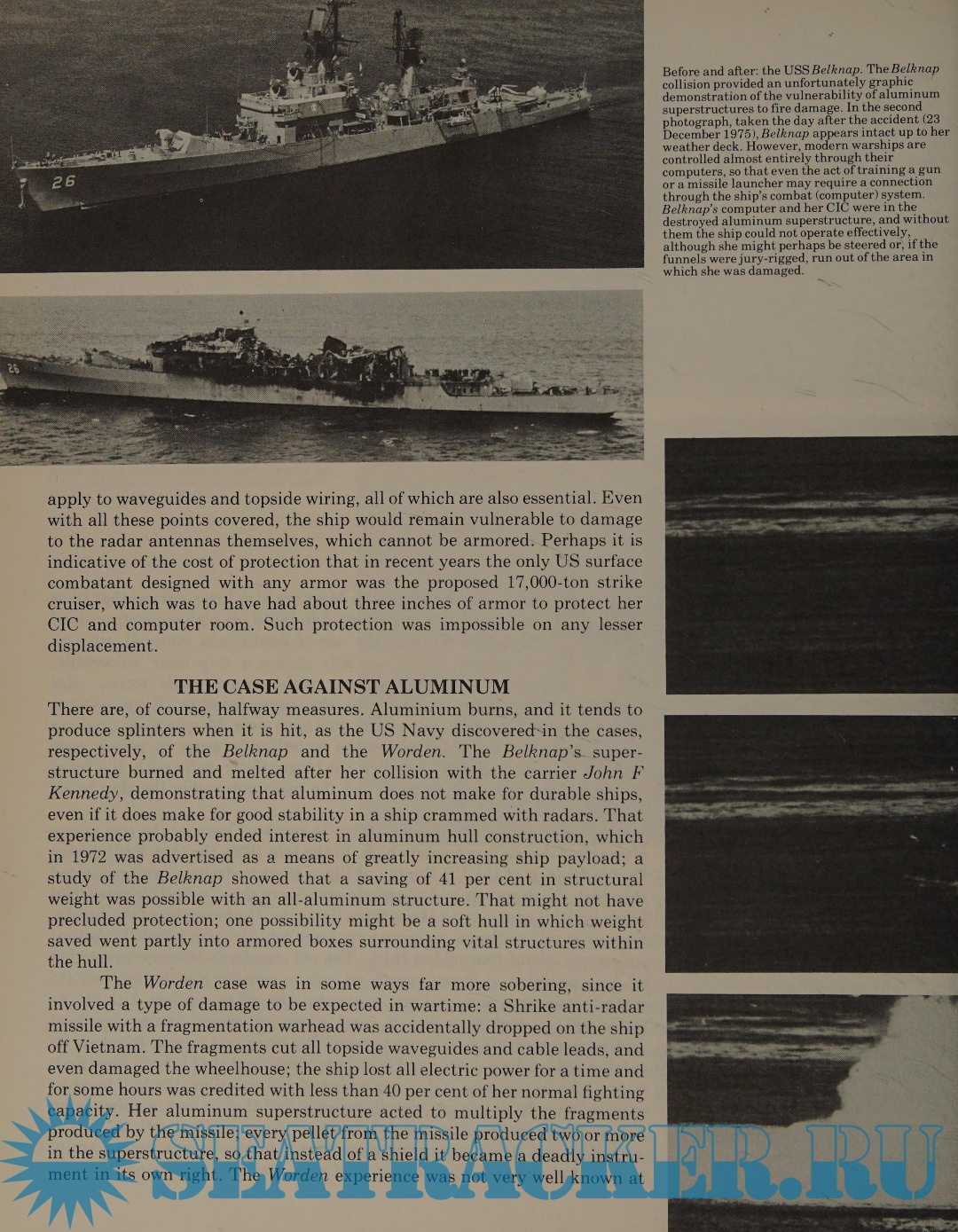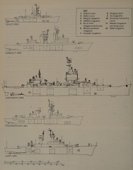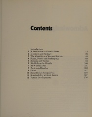 Many black and white photos and illustrations. Analysis of the history of warships, their use and requirements for modern naval warfare, and speculations on future developments.