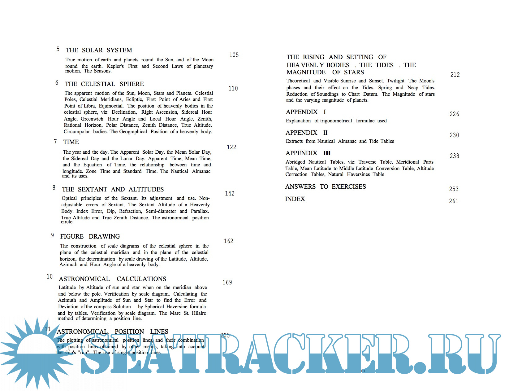 A set of ordinary four-figure mathematical tables is required to work the examples for exercises that are given in the book. All other tables that are used are contained in the Appendices. For those readers who possess volumes of Nautical Tables, such as those published by Norie, Burton or Inman, answers are also given to five-figure accuracy, where required.
