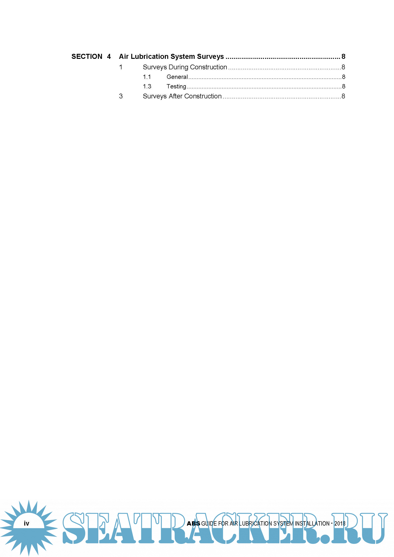 Year: 2018 Language: english Author: ABS Genre: Guide Format: PDF Quality: eBook Pages count: 12 Description: This Guide is applicable to three air lubrication technologies: air bubble, air layer and air cavity methods, which are currently in various degrees of development by the industry. These technologies are continuously evolving. Alternative arrangements, designs and technologies may be acceptable on a case-by-case basis provided they can be demonstrated, through either satisfactory service experience or a systematic analysis based on sound engineering principles, to meet the overall requirements of this Guide. The effective date of this Guide is the first day of the month of publication.