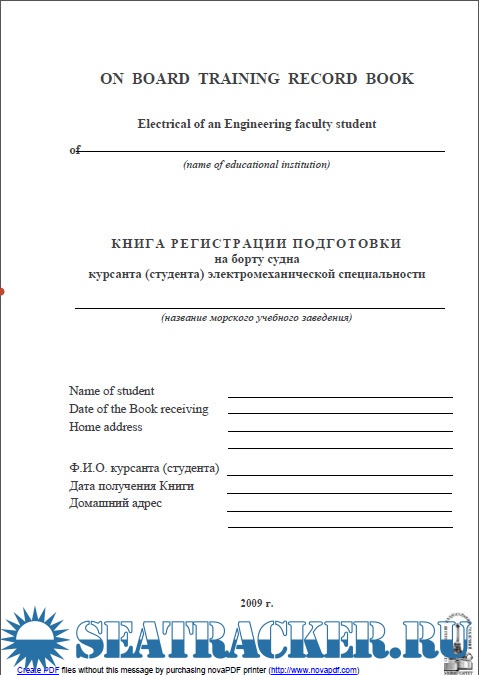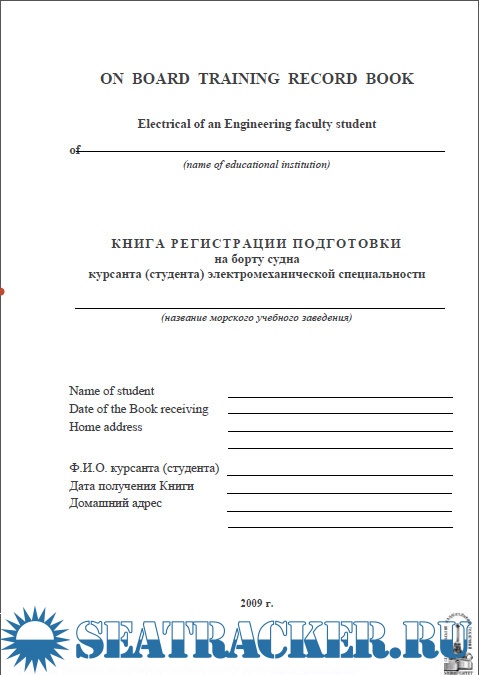ON Board Training Record Book Electrical student of an Engineering faculty / Книга регистрации подготовки кандидата на получение рабочего диплома электромеханика третьего разряда