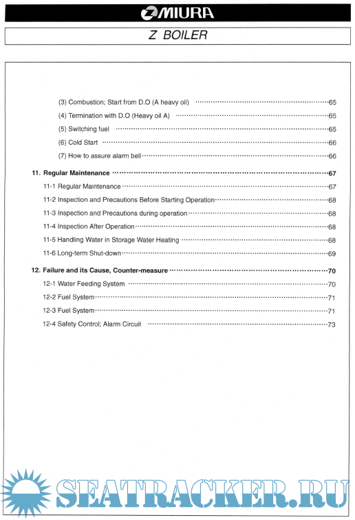 Year: 2006 Language: english Author: MIURA CO.LTD Genre: Manual Format: PDF Quality: Scanned pages Pages count: 607 Description: This manual gives you instructions on how to use the Z-Boiler. In using the boiler, make sure you choose a person in charge of handling the boiler (Engineer) and use the boiler after perusing the manual and understanding the contents. In addition, we recommend that you always have this manual at hand when you work. The main contents of this manual are: Outline of HB-type Z-Boiler, main functions, descriptions of the control system, operating procedure and maintenance. Precautions relating to operating method and safety indicated in this manual from damages to measures only relate to usage for specified purposes.