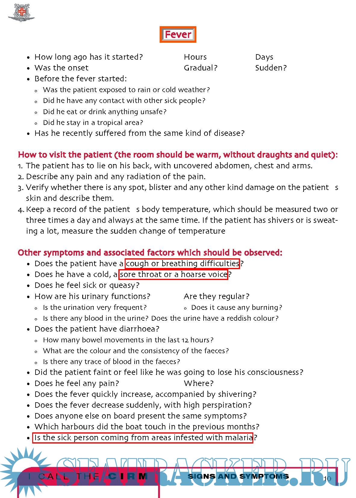 How to visit someone who gets sick onboard of a shipSigns and symptoms of the most frequent diseases. pag. 6