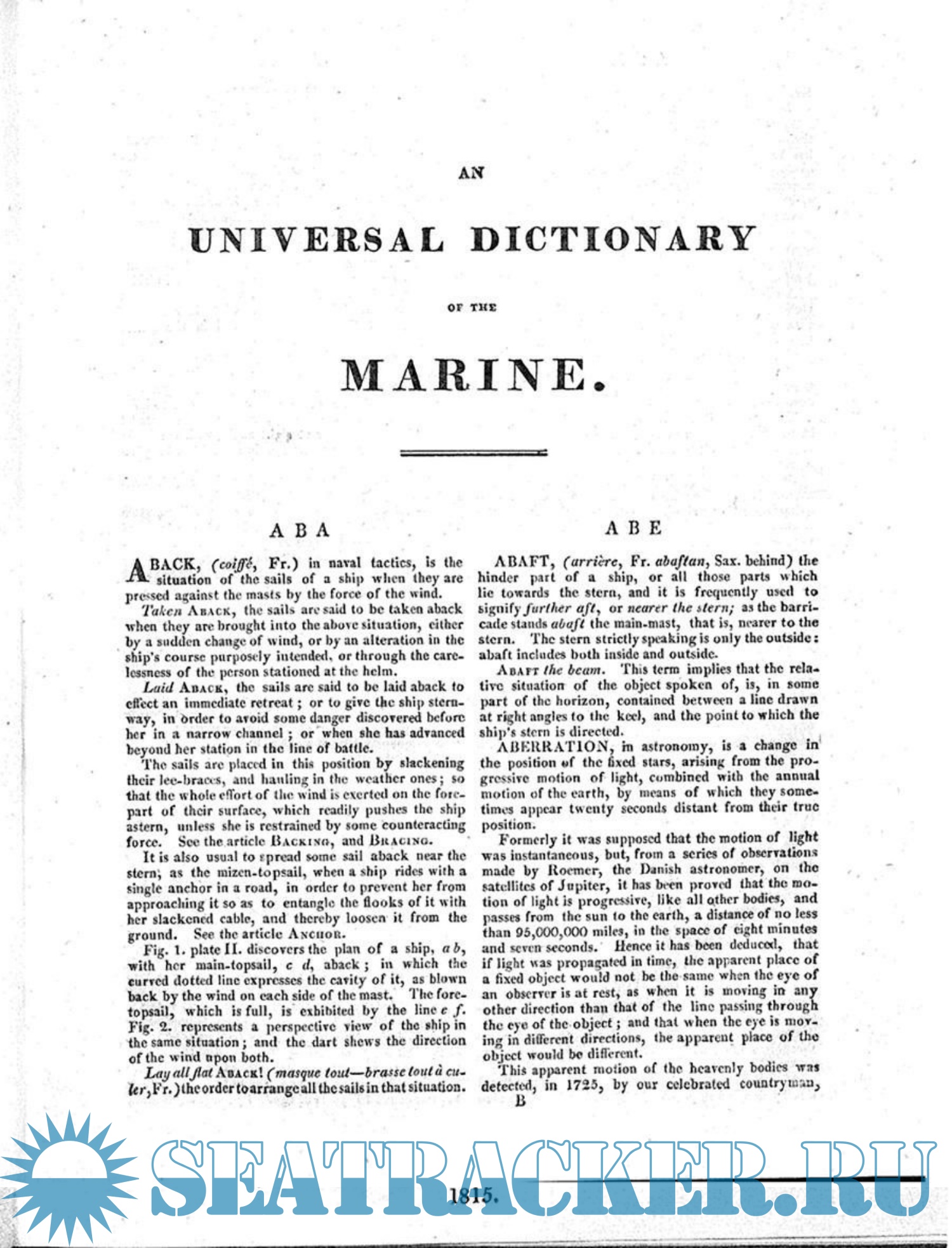 Year: 1815 Language: english Author: Falconer W., Burney W. Genre: Dictionary Publisher: Bookseller to the Admiralty Format: PDF Quality: Scanned pages Pages count: 844 Description: The mother of all English maritime dictionaries. William Falconer was baptized in Edinburgh on 11 February 1732. Evidence for his seafaring life is to be adduced from his long poem The Shipwreck, which he claims to be autobiographical. Falconer's serious literary career began in May 1762, when he was in London for the publication of The Shipwreck: a Poem, in Three Cantos, by a Sailor. The popularity of The Shipwreck derives from its unique character as a technically detailed seafaring verse narrative, full of pathos and sublimity, from the pen of a professional sailor. Falconer's reputation rests on these two major works: the Dictionary of the Marine and The Shipwreck. The former is a work of extraordinary care and scientific thoroughness, and it became the standard nautical dictionary until the end of sail. William Falconer first published his Marine Dictionary in 1769, and it obviously filled a need because it was not merely reprinted but was actively revised on numerous occasions in the last decades of the eighteenth century. Its alphabetical format provided not just succinct definitions of maritime terminology but detailed, and sometimes tabular data on many technical aspects of shipbuilding, fitting and armament, not to mention the Royal Navys administrative and operational practices. In the summer of 1769 Falconer agreed to sail with the East India Company commissioners who were appointed for the restoration of order in India. The frigate Aurora sailed on 30 September. (Contrary to most accounts Falconer was a passenger, not the purser). The Aurora arrived at Cape Town on 6 December 1769, sailing on 22 December. She was reported in Madagascar in April 1770. Nothing was heard of her again and Falconer can be presumed to have died in 1770. The most desirable edition is the fourth, of 1815, as revised and greatly expanded by William Burney. William Burney was the author of several books on the naval history and biography of his time. He taught at the Gosport Naval Academy, just across from the dockyard at Portsmouth. Because of the time it took for information to trickle down, earlier editions tend to be out of date when published, but Burney (who had good Admiralty contacts) contrived to get dimensions, tables and establishments actually used by the Navy of his day. This edition is over 850 pages long and include 35 plates. This makes it a prime source for technical details and the actual practice of the navy during the classic age of Nelson.