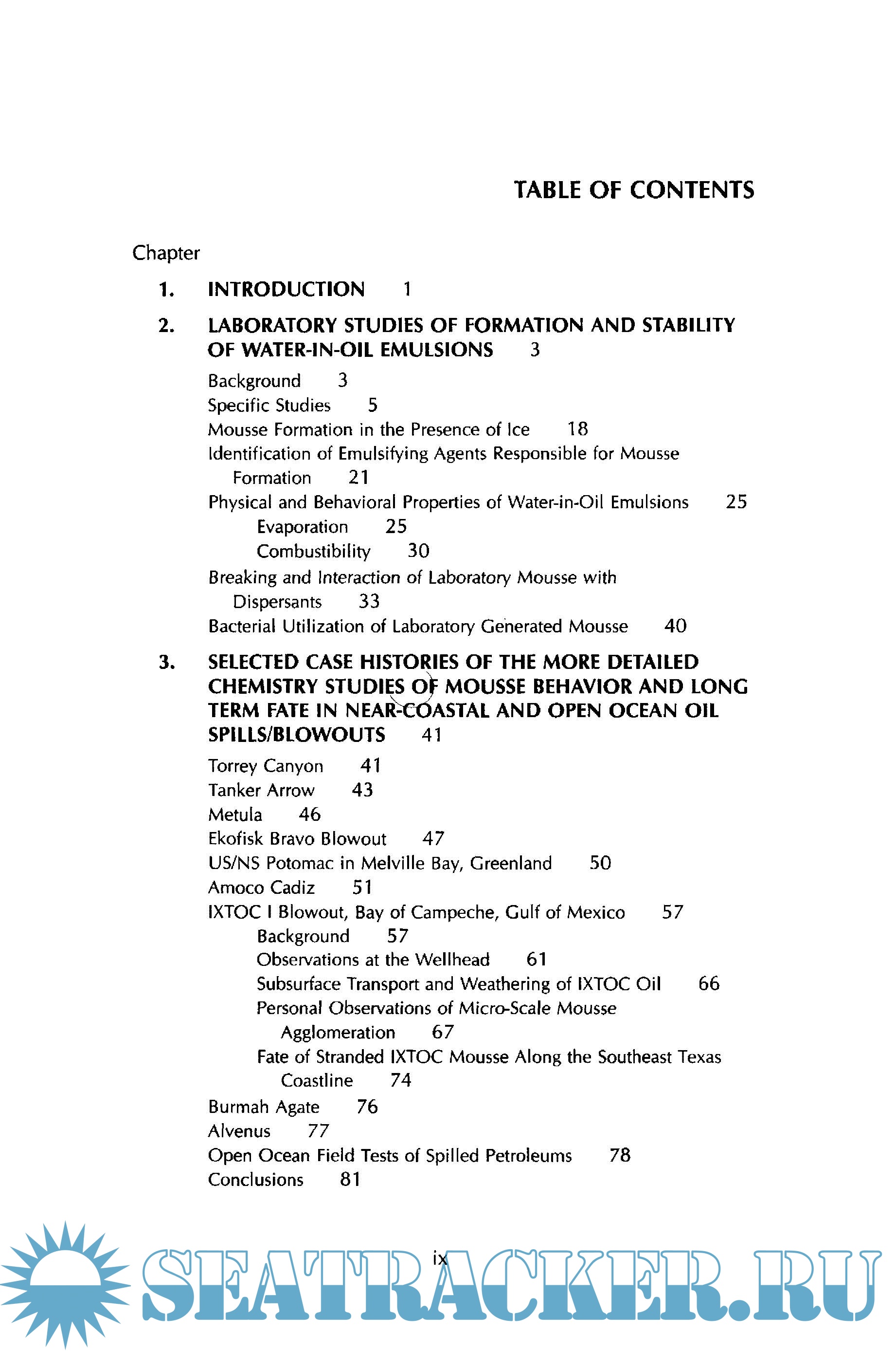Description: This book covers research completed between 1981 and May 1985 and includes: reviews of recent studies, sittings and investigations at spills-of-opportunity as well as results of recent arctic and sub-Arctic oil weathering experiments and observations on the behaviour of crude oil in the presence of ice. Topics covered include the following: laboratory studies of formation and stability of water-in-oil emulsions; selected case histories of the more detailed chemistry studies of mousse behaviour and long term fate in near-coastal and open ocean oil spills/blowouts; tar ball formation and distribution; and algorithms and computer programs to simulate the formation of water-in-oil emulsion.