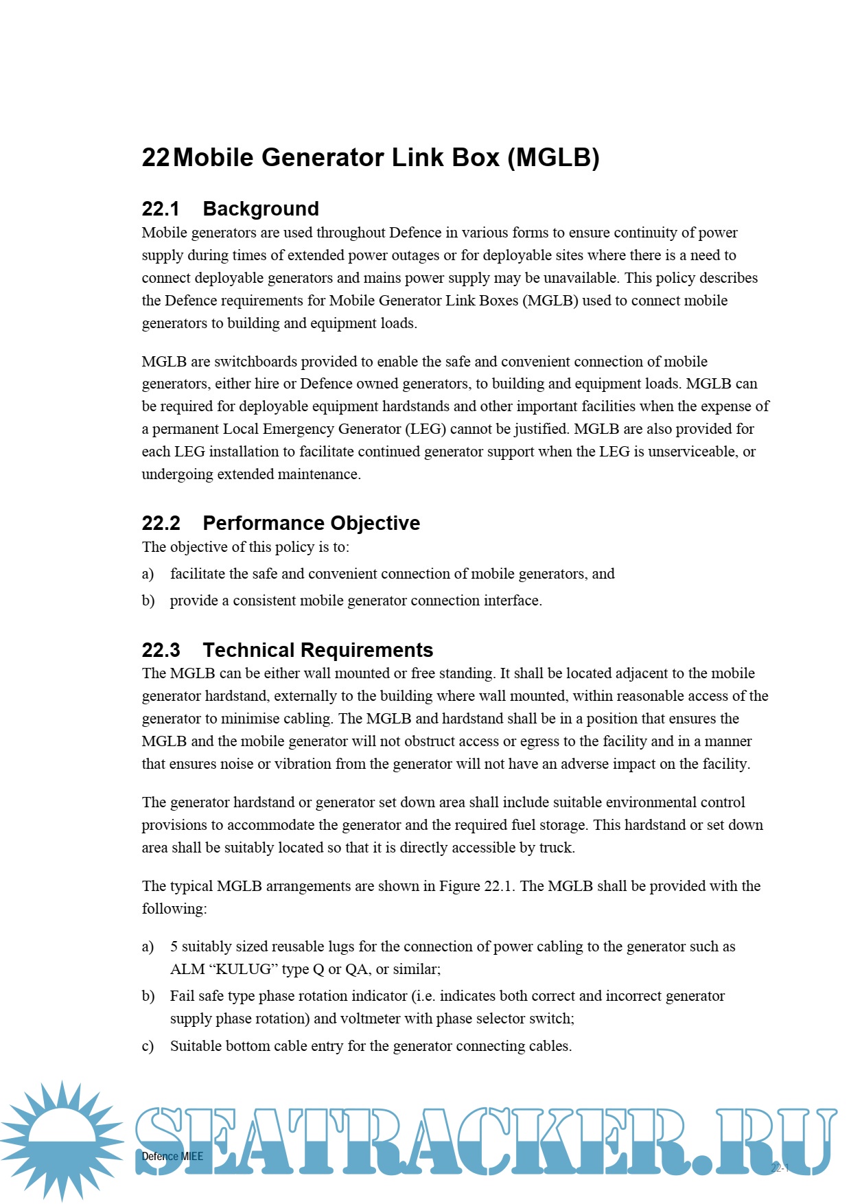 Description: The Manual of lnfiastructure Engineering - Electrical (MIEE) is the primary Defence policy document when determining electrical engineering requirements for Defence facilities and infrastructure. Its provisions are mandatory.