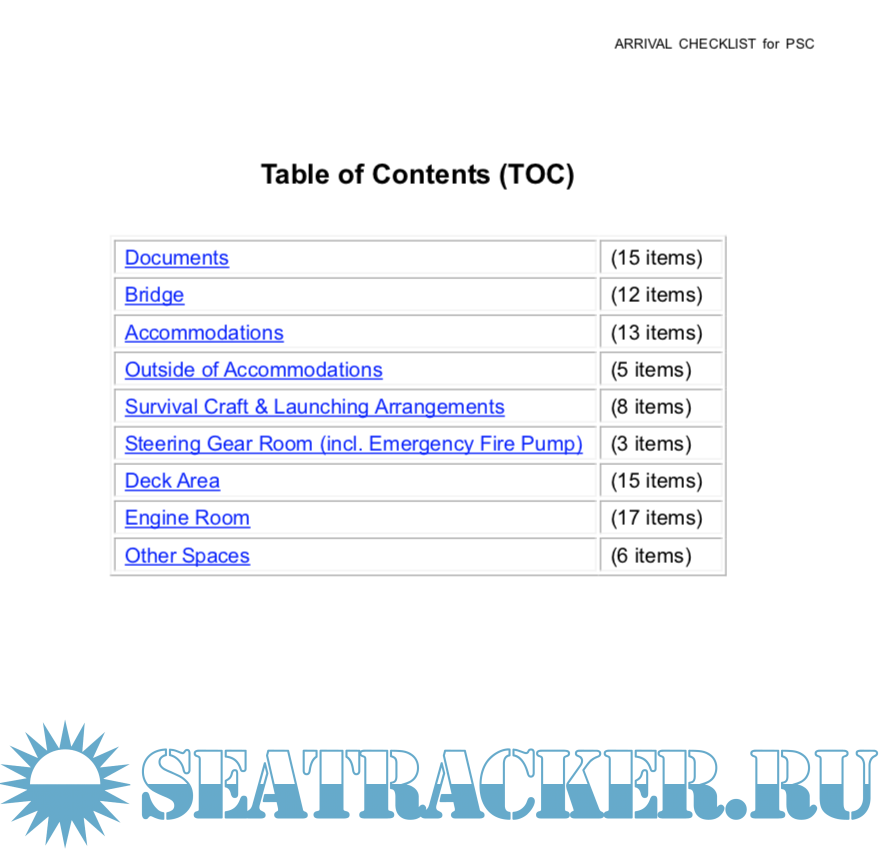 To minimize the risk of your ship being detained by PSC, the checklist should be used by the vessel’s crew prior to arrival into port. The items identified in this checklist focus on areas where deficiencies that have often resulted in PSC detention.