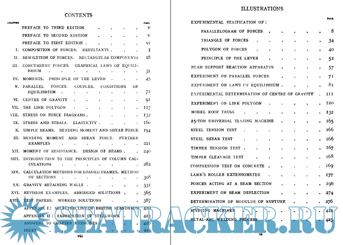 Year: 1958 Language: english Author: Trefor J. Reynolds & Lewis E. Kent Genre: Textbook Publisher: The English Universities Press Ltd Format: PDF Quality: Scanned pages + text layer Pages count: 456 Description: l\s mentioned in the preface to the original edition of this book in 1944, the aim was to present, in simple language, the basic ?principles of building mechanics. However, the application of these principles to modern structural regulations have not been forgotten. British Standard 449 has laid down certain new working stresses. For example, an important cl1angc is the raising of the permission, working stress in bending from 8 tons/in . 2 to 10 tons/in. 2, in th<' case of simple beams. Where it has appean•d to be desirable, the new working stresses have been used in this edition, keeping in mind the general scope of the book. It must be remembered that all lists of stresses, etc., issued in ' Codes ' and ' Standards ' 'I.re subject to periodic revision. The book remains a text-book of fundamental principles of structural mechanics. The authors wish to thank the British Constructional Steelwork Association and the British Steel Makc>rs for permission to include' the tables on pages z62--265 inclusive.