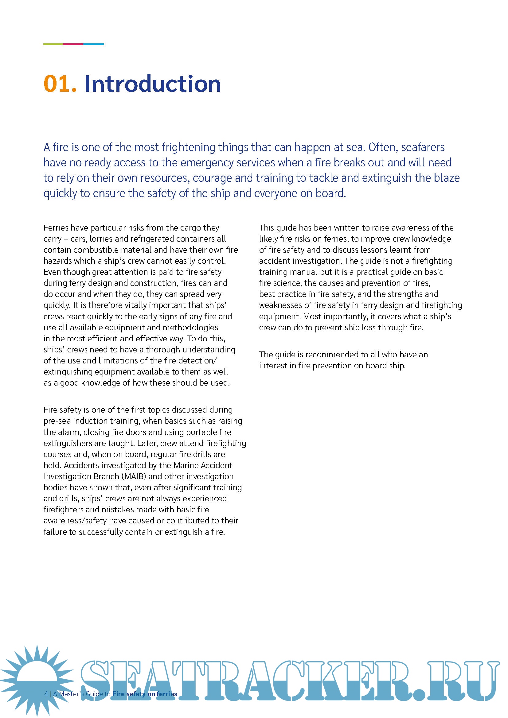 The guide to Fire Safety on Ferries is written for mariners, although surveyors, safety