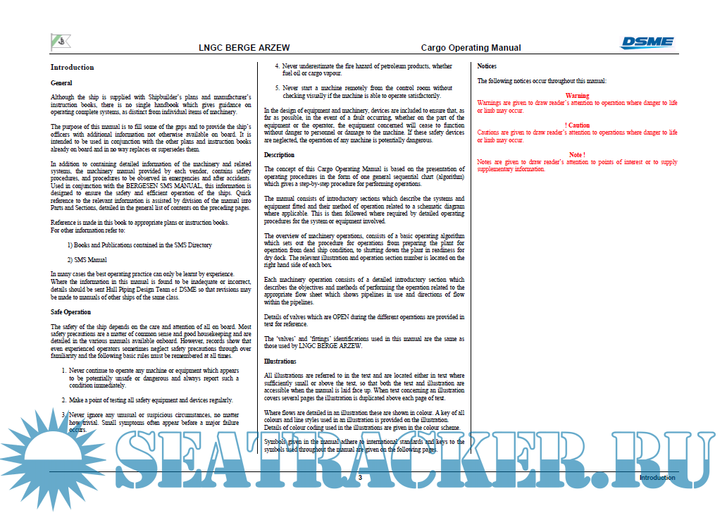 Year: 2004 Language: english Author: dsme Genre: Manual Format: PDF Quality: eBook Pages count: 221 Description: BERGE ARZEW is a LNG carrier built in 2004 by DAEWOO SHIPBUILDING & MARINE ENGINEERING CO. LTD. - SEOUL, SOUTH KOREA. Currently sailing under the flag of Bahamas. It's gross tonnage is 93844 tons and cargo capacity 138061 cubic meters