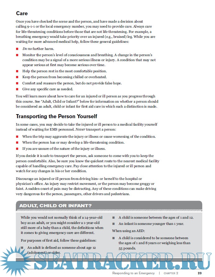 Year: 2012 Language: english Author: American Red Cross Genre: Textbook Publisher: American National Red Cross Format: PDF Quality: eBook Pages count: 536 Description: This participant’s textbook is part of the American Red Cross Responding to Emergencies: Comprehensive First Aid/CPR/AED program. By itself, it does not constitute complete and comprehensive training. Visit redcross.org to learn more about this program. The emergency care procedures outlined in this book reflect the standard of knowledge and accepted emergency practices in the United States at the time this book was published. It is the reader’s responsibility to stay informed of changes in emergency care procedures.