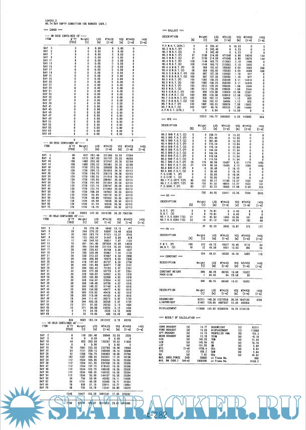 Loading and stability information. Containership APL Russia (MOL Comfort), 8110 TEU