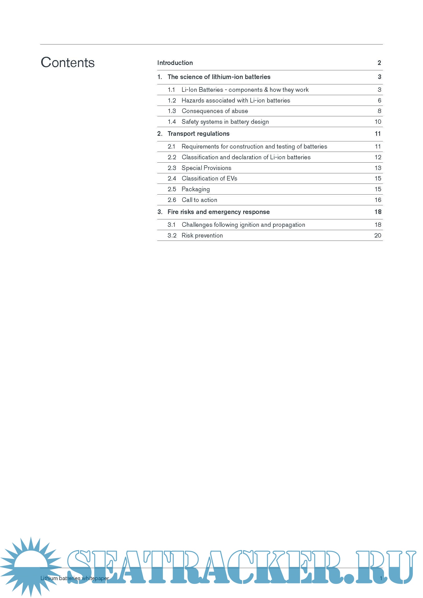 paper include background science on Li-ion batteries, the dangers associated with transporting