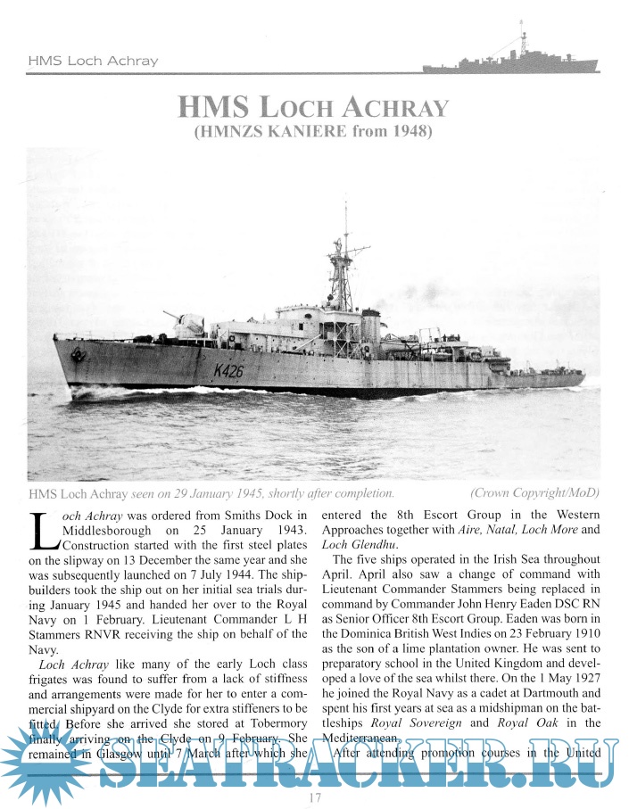 Year: 2013 Language: english Author: Patrick Boniface Genre: History Format: PDF Quality: Scanned pages Pages count: 264 Description: The Loch class was to prove to be amongst the best A/S frigates produced by Great Britain during the war, although most of the class only entered service from 1944 onwards. 110 ships were projected, but with the end of the war only 28 were completed as such. This volume records the design and service record of these vessels.