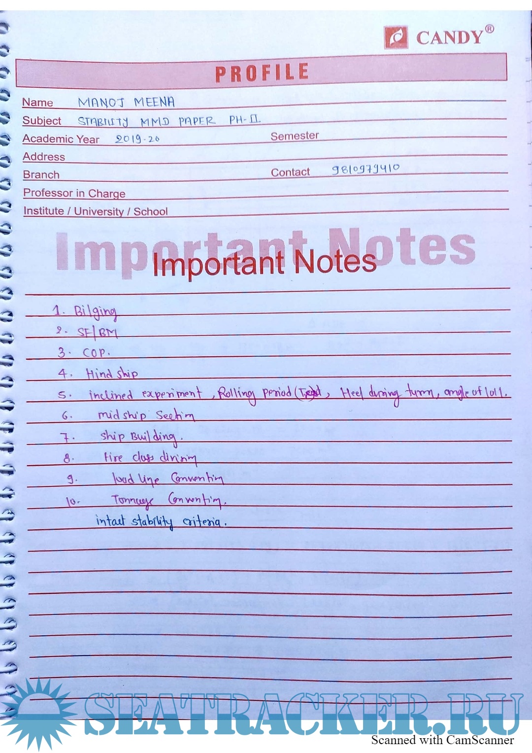 Description: This documents contains Nav Arch - II hand written notes as well as the important solved questions asked in MMD Exam.