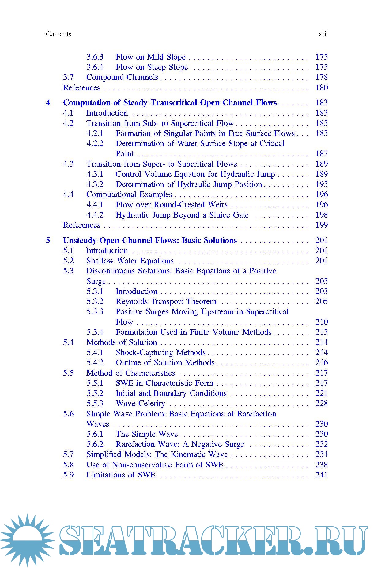 flows (Chaps. 2–4), unsteady open channel flows (Chaps. 5–9), and special topics