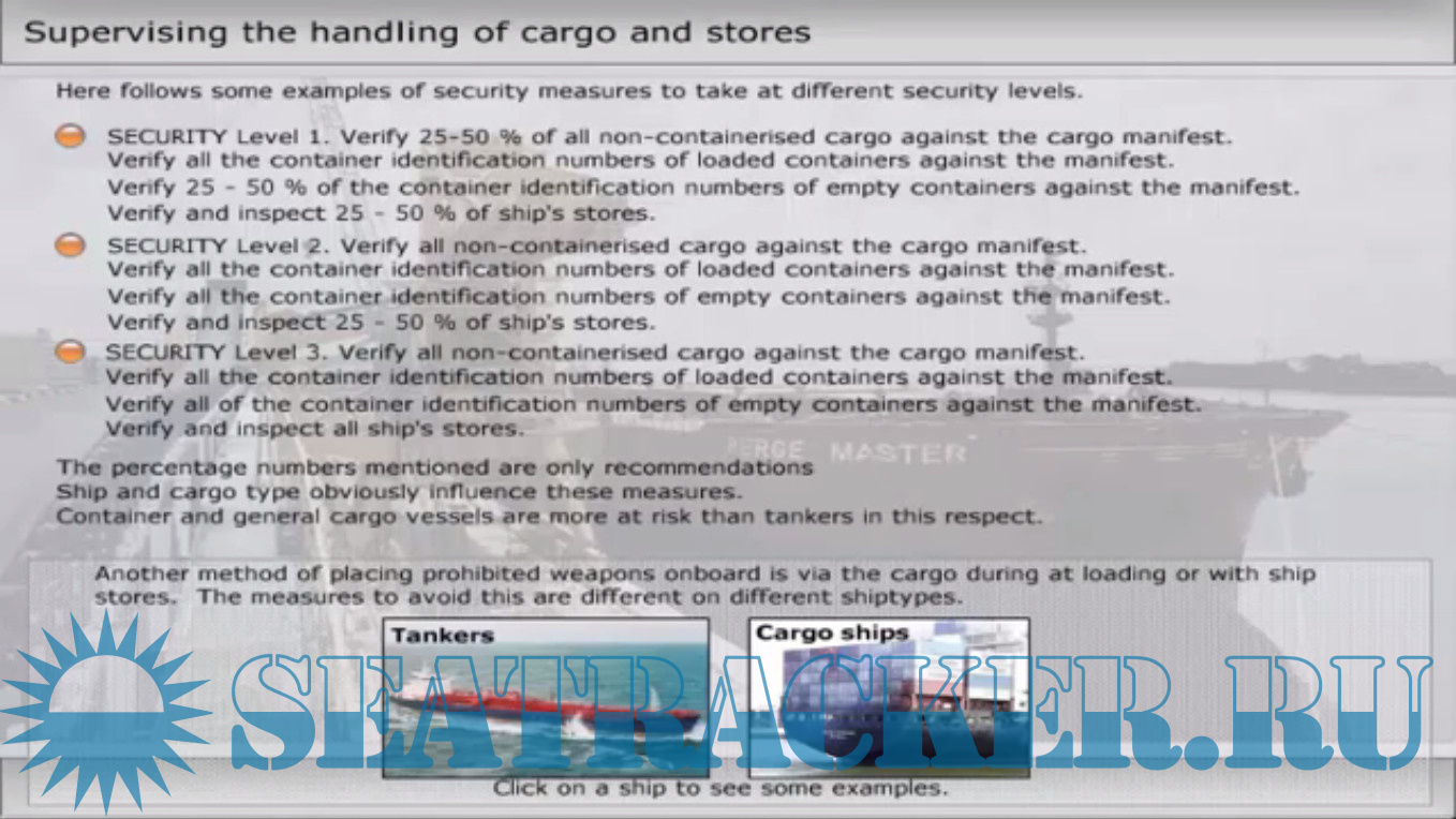 Year: 2018 Language: english Playtime: 31:12 Quality: WEB-DL Format: MP4 Video: 640x360 / 157 kbps / 16:9 Audio: 96 kbps / 44.1 KHz Description: There are 5 training video lessons in this batch: ISPS Code Regulations Ship Security Plans What are the Duties of Ship, Company, and Port Officer Training and Drills Required by the Ship Security Plan Ship Security Measures and Ship Security Levels After successfully completing this video lessons, you : - will be familiar with ISPS Code Ch 11-2, and associated Regulations. - will be familiar with Ship Security Plans - will be familiar with the duties of: • Company Security Officer Responsibilities(CSO) • Ship Security Officer Responsibilities(SSO) • Port Facility Security Officer Responsibilities(PFSO) - will be familiar with the Training and drills required by the Ship Security Plan. - will know what security measures to take at the different Security levels.