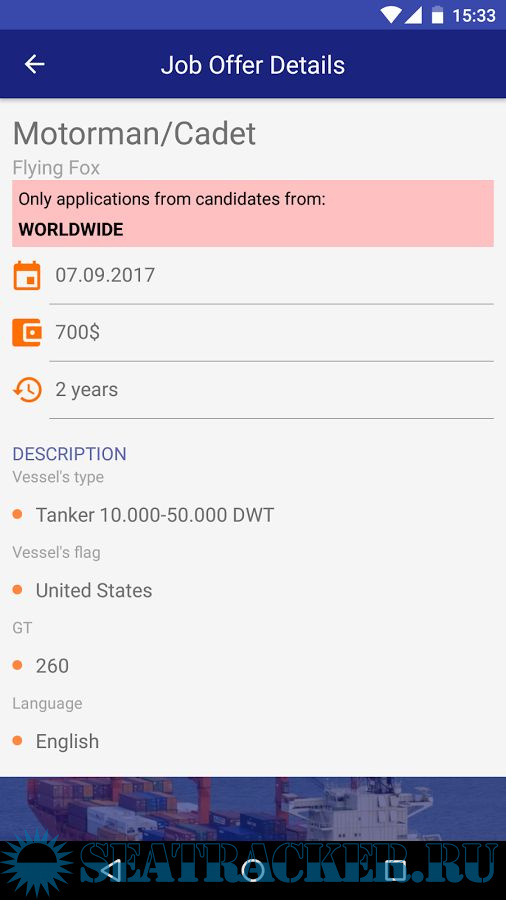 Year: 2017 Version: 2.05 Developer: BADOR Platform: Android System Requirements: Android 4.1 or higher Localization: english Crack: Not needed Description: Your ship, your rules. New App for Seafarers to help you to keep all certification, applications, sea service e.t.c. in one handy place - at your mobile. SeaMan’sBook is a simple tool which will make your job and life more easy! Additional info: At first use you need to create an account.