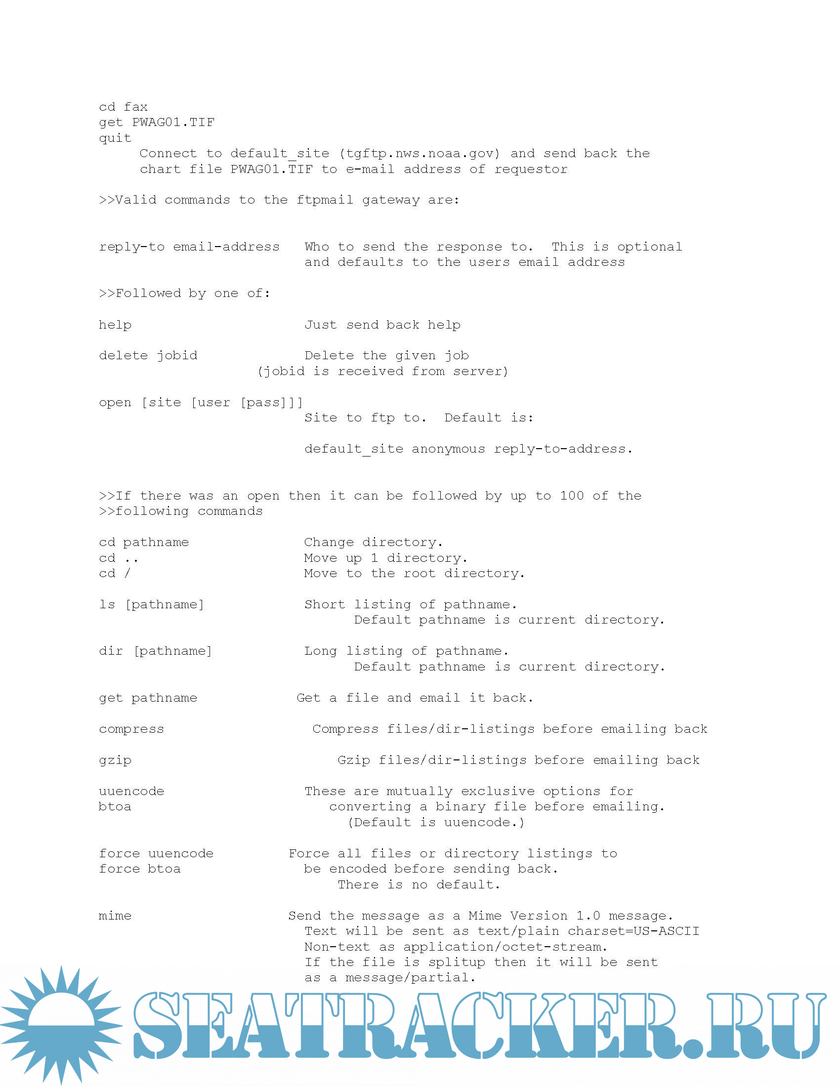 This document also includes information on how to obtain National Weather Service text forecasts, graphic forecasts, and marine observations via the Internet and e-mail (FTPMAIL). Mariners are highly encouraged to explore these options.