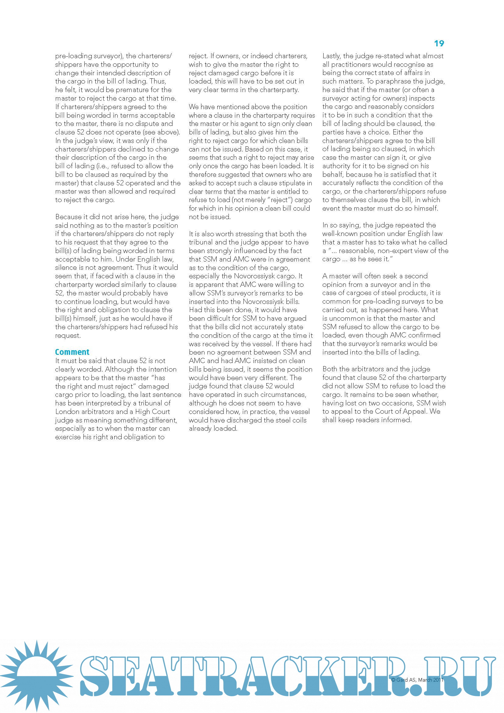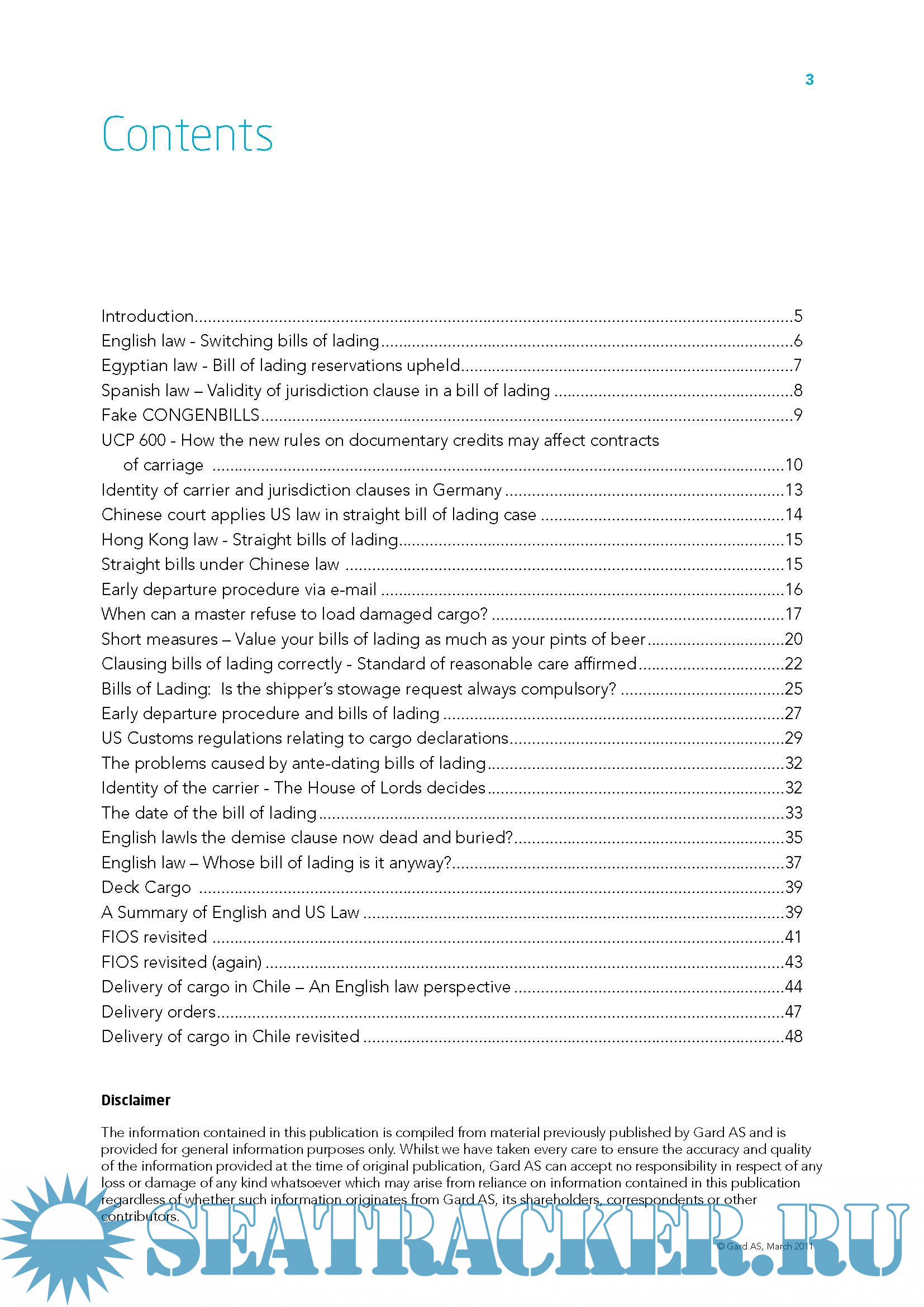 Year: 2011 Language: english Author: Gard P&I Genre: Guide Format: PDF Quality: eBook Pages count: 82 Description: This booklet contains a collection of loss prevention material relating to bills of lading and which has been published by Gard over the years. Gard - the P&I Club - has considerable experience of bill of lading issues both from claims handling as well as from dealing with Member enquiries. Experience indicates that even the simplest of mistakes or an oversight in a bill of lading can lead to complex and expensive problems at a later date. These issues are important considering that the Member’s P&I cover can often be at stake. Gard is committed to sharing its experience with others through the various loss prevention publications.
