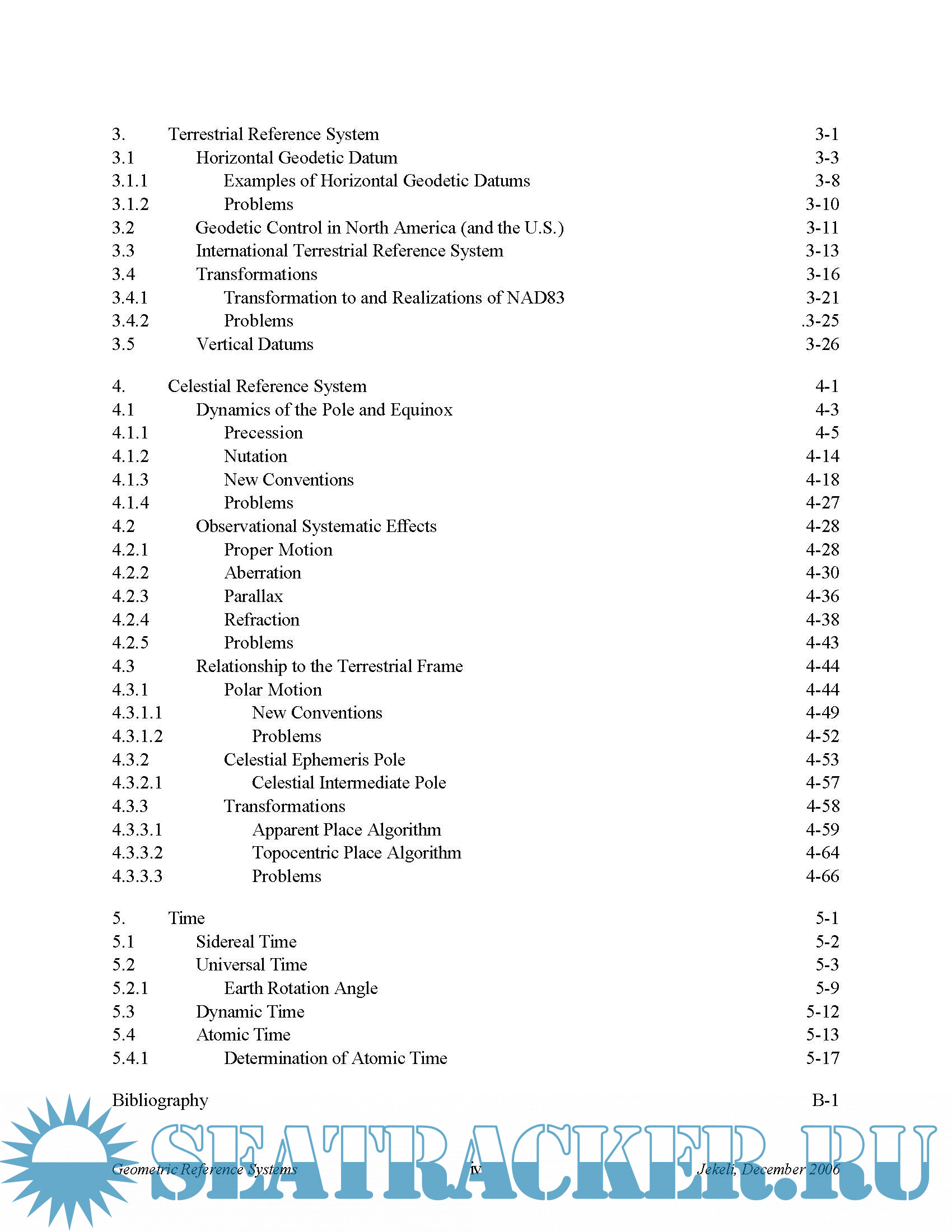 Year: 2006 Language: english Author: Ohio State University Genre: Technical book Format: PDF Quality: eBook Pages count: 202 Description: Geodesy is the science of the measurement and mapping of the Earth’s surface, and being essentially an application of mathematics it makes use of coordinates and associated reference systems. The object of this course is to study the various local, regional, and global reference systems that are in use to describe coordinates of points on the Earth’s surface or in near space and to relate them to each other as well as to some "absolute" frame, visually, a celestial frame. As the name of the course implies, we deal mostly with the geometry of these systems, although the physics of the Earth plays a very important part. However, the relevant geophysics is discussed more comprehensively in other courses on gravimetric geodesy and geodynamics. Also, we do not treat the mapping of points and their coordinates onto the plane, that is, map projections. The purpose is mainly to explore the geometric definition of reference systems and their practical realization. To establish coordinates of points requires that we set up a coordinate system with origin, orientation, and scale defined in such a way that all users have access to these. Only until recently, the most accessible reference for coordinates from a global perspective was the celestial sphere of stars, that were used primarily for charting and navigation, but also served as a fundamental system to which other terrestrial coordinate systems could be oriented. Still today, the celestial reference system is used for that purpose and may be thought of as the ultimate in reference systems. At the next level, we define coordinate systems attached to the Earth with various origins (and perhaps different orientations and scale). We thus have two fundamental tasks before us: 1) to establish an external ("inertial") coordinate system of our local universe that we assume remains fixed in the sense of no rotation; and 2) to establish a coordinate system attached to our rotating and orbiting Earth, and in so doing to find the relationship between these two systems. In fact, we will develop the terrestrial coordinate system before discussing the celestial system, since the latter is almost trivial by comparison and the important aspects concern the transformation between the systems.