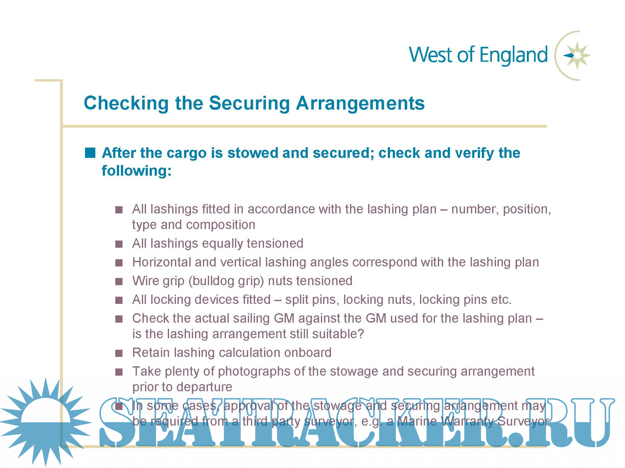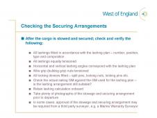 Year: 2018 Language: english Author: West of England P&I Genre: Presentation Format: PDF Quality: eBook Pages count: 69 Description: This presentation covers the Project cargo -stowage and securing from the aspects of Regulatory Requirements and Recommendations, Stowage, Lashings -Principles, Types of Lashings, Welding and NDT, Lashings Calculations, Difficult Cargoes.