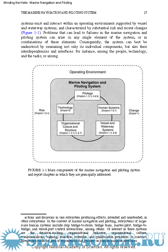 Year: 1994 Language: english Author: National Research Council (U. S.) Committee on Advances in Navigation and Piloting Genre: Manual Publisher: National Academies Press Edition: 1st ISBN: 978-0-309-04829-3 Format: PDF Quality: OCR without errors Pages count: 523 Description: A comprehensive analysis of issues in marine navigation and piloting. It addresses the application of new technology to reduce the probability of accidents, controversies over the effectiveness of waterways management and marine pilotage, and navigational decision making. It also explores the way mariners piloting ships and tugs are trained, licensed, and held accountable. It approaches navigational safety from the perspectives of risk assessment and the integration of human, technological, and organizational systems. Air and marine traffic regulation methods are compared, including the use of vessel traffic services. Large ships transporting hazardous cargoes, notorious marine accidents, and damage to marine ecosystems from tanker spills have heightened public concern for the safe navigation of ships. This volume offers a complete, highly readable assessment of marine navigation and piloting. It addresses the application of new technology to reduce the probability of accidents, controversies over effectiveness of waterways management and marine pilotage, and navigational decisionmaking. The book also explores the ways pilots of ships and tugs are trained, licensed, and held accountable. Air and marine traffic regulation methods are compared, including the use of vessel traffic services. Large ships transporting hazardous cargoes, notorious marine accidents, and damage to marine ecosystems from tanker spills have heightened public concern for the safe navigation of ships. Minding the Helm approaches navigational safety from the perspectives of risk assessment and the integration of human, technological, and organizational systems. Air and marine traffic regulation methods are compared, including the use of vessel traffic services.