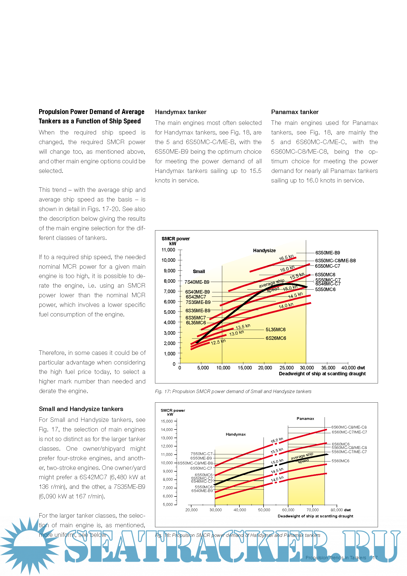 The purpose of this paper – dealing with tanker sizes above 5,000 dwt, and based on an analysis of tankers built/ordered over the last eight years – is to illustrate the latest ship particulars used for modern tankers, and to determine their impact on the propulsion power demand and main engine choice, using the latest MAN B&W two-stroke engine programme as the basis.