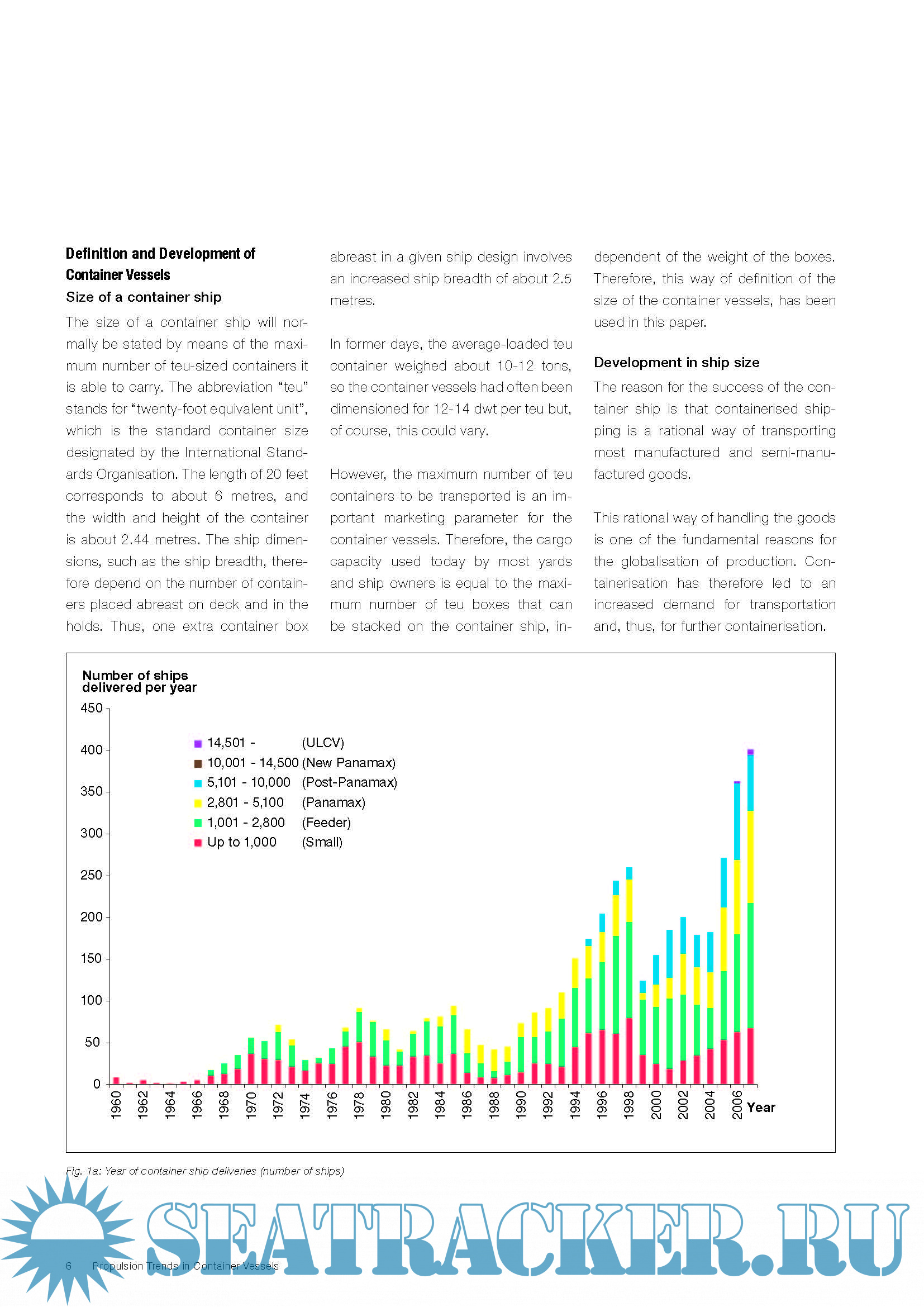 Year: 2013 Language: english Author: MAN Diesel & Turbo Genre: Research papers Publisher: MAN Diesel & Turbo (Copenhagen, Denmark) Format: PDF Quality: eBook Pages count: 28 Description: The purpose of this paper – dealing with container ship sizes above 400 teu, and based on an analysis of container vessels ordered and built over the last five years – is to illustrate the latest ship particulars used for modern container ships and determine their impact on the propulsion power demand and main engine choice, using the latest MAN B&W two-stroke engine programme as the basis. The latest drastic increase of heavy fuel oil prices has now forced some ship operators to reduce the fuel costs by cutting the top of the ship speed in service. This will, without any doubt, have an important influence on the selection of main engines for container ships in the future, and is briefly discussed in this paper.