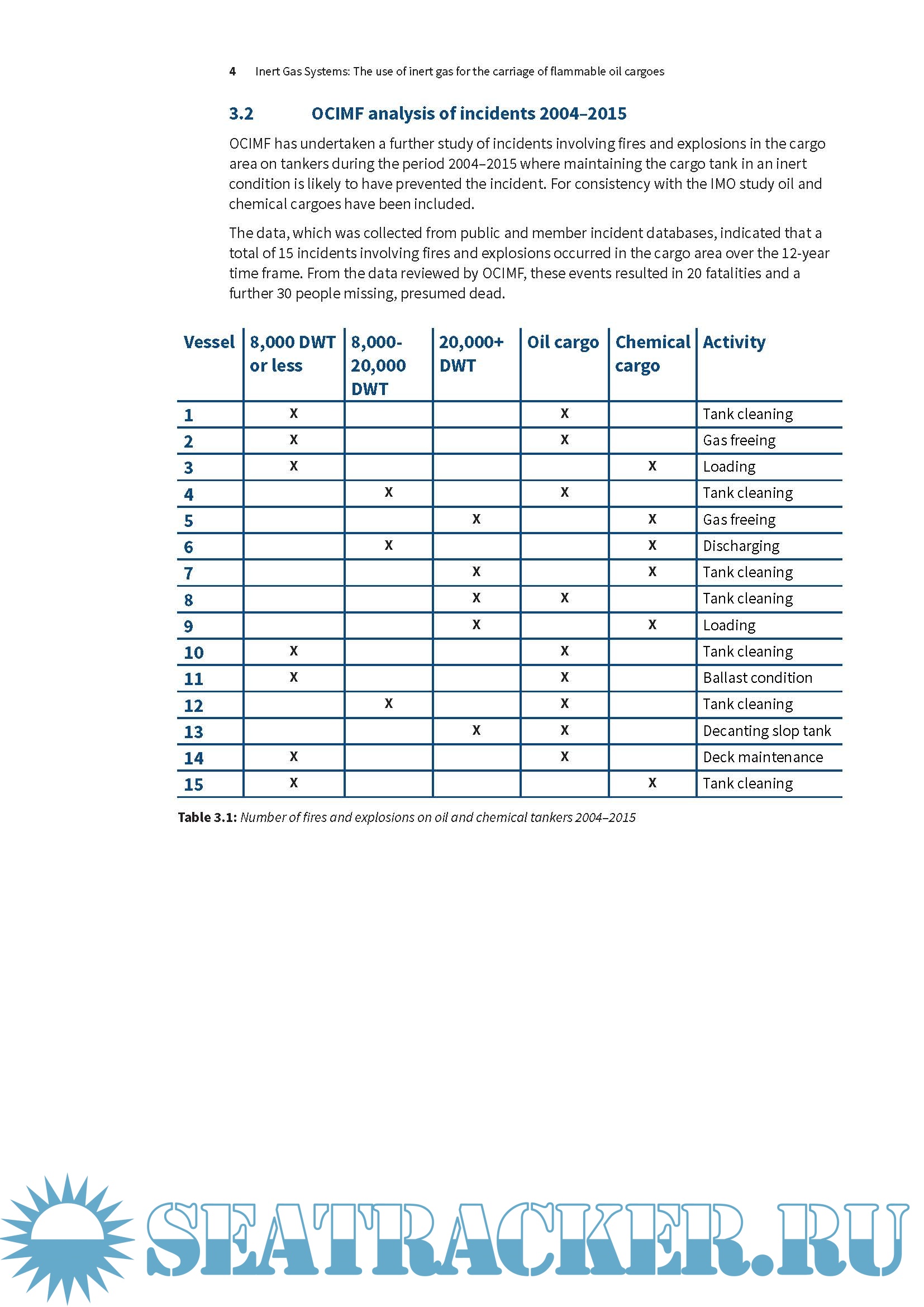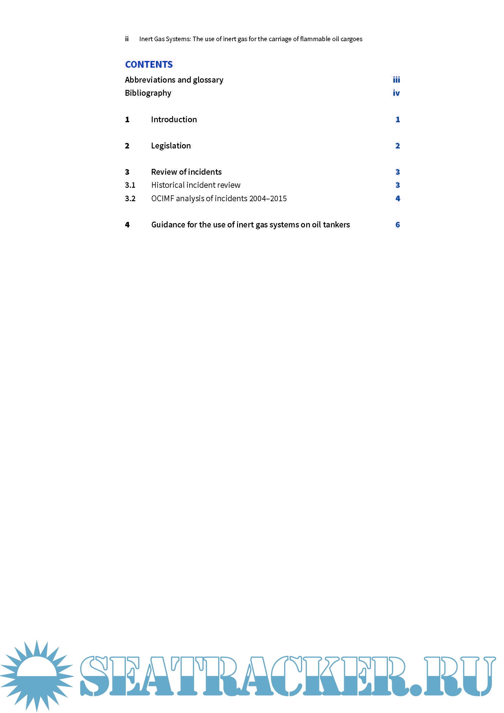 Year: 2017 Language: english Author: Oil Companies International Marine Forum Genre: Guide Publisher: OCIMF Edition: 1st Format: PDF Quality: eBook Pages count: 12 Description: This document provides guidance on the use of inert gas for the carriage of flammable oil cargoes on oil tankers of all sizes. For the purposes of this paper, and in accordance with SOLAS Chapter II-2, Regulation 1-6.1, flammable oil cargoes are defined as crude oil or petroleum products that have both: • A flashpoint of less than 60°C in a closed cup test using approved flashpoint apparatus. • A Reid vapour pressure below the atmospheric pressure or other liquid products that have a similar fire hazard. This paper is based on historical incidents involving fires and explosions in the cargo areas on tankers carrying flammable cargoes. The guidance establishes the safety benefits of using inert gas as an effective barrier to prevent cargo tank fires and explosions, regardless of vessel size.