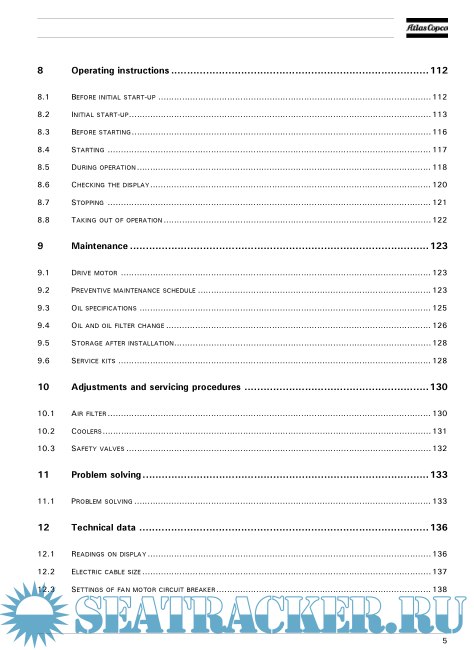 Instruction Book for Atlas Copco Deck Air Compressor (GA11, GA15, GA18, GA22, GA30C)