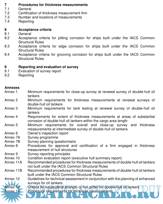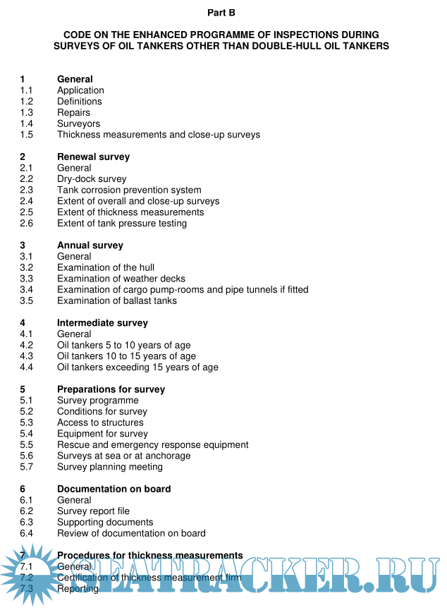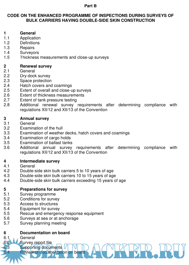 Parts A and B of annex A of the Code provide the requirements for bulk carriers with single-side skin and double-side skin construction respectively. Parts A and B of annex B of the Code provide the requirements for oil tankers with double-hull and non-double-hull construction respectively. The requirements of part A of annex B are also applicable to existing double hull tankers not complying with MARPOL regulation I/19, but which have a U-shaped midship section. For single-side skin combination carriers (ore and oil carriers) requirements are specified in the Code set out in part A of annex A and part B of annex B. For double-side skin combination carriers (ore and oil carriers) requirements are specified in the Code set out in part B of annex A and part A of annex B
