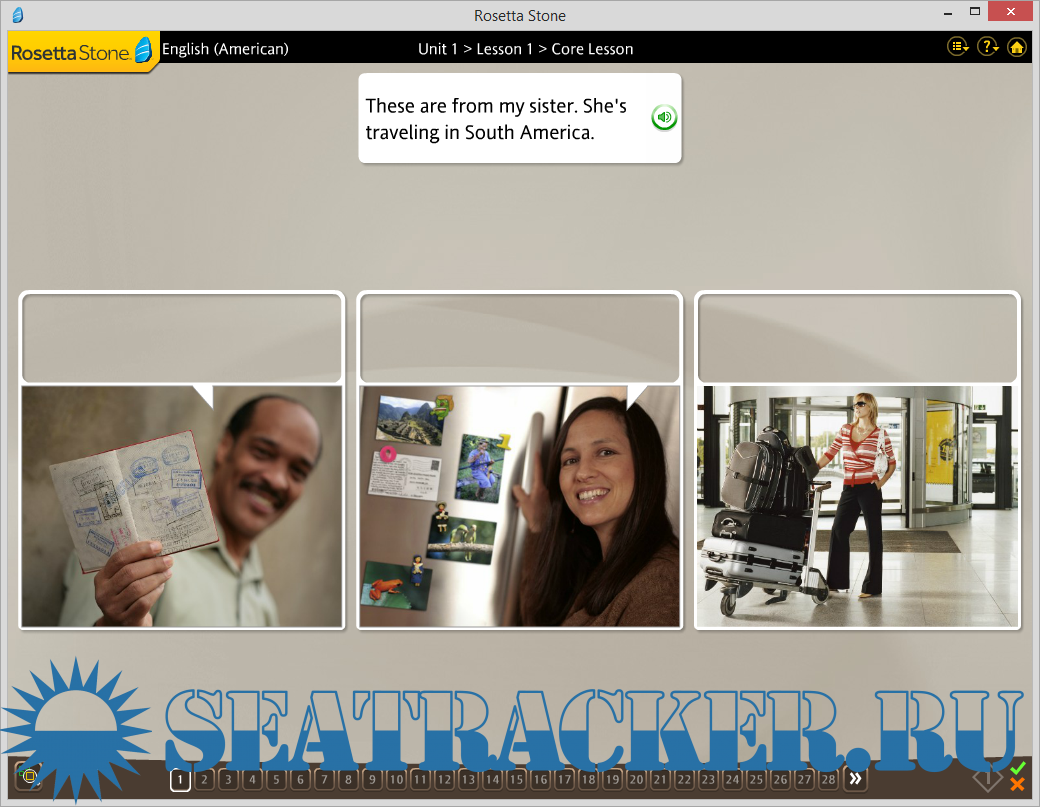 Описание: "Rosetta Stone" ("Розеттский камень") — лучшая программа для изучения языка в домашних условиях с "полного нуля". Эта методика позволяет учить так, как вы в детстве начинали учить свой родной язык — без правил, путем погружения в языковую среду, многократного повторения и формирования ассоциативного ряда в различных областях жизни, выработки шаблонов и автоматизмов по принципу от простого к сложному, от практического восприятия к написанию и правилам.
