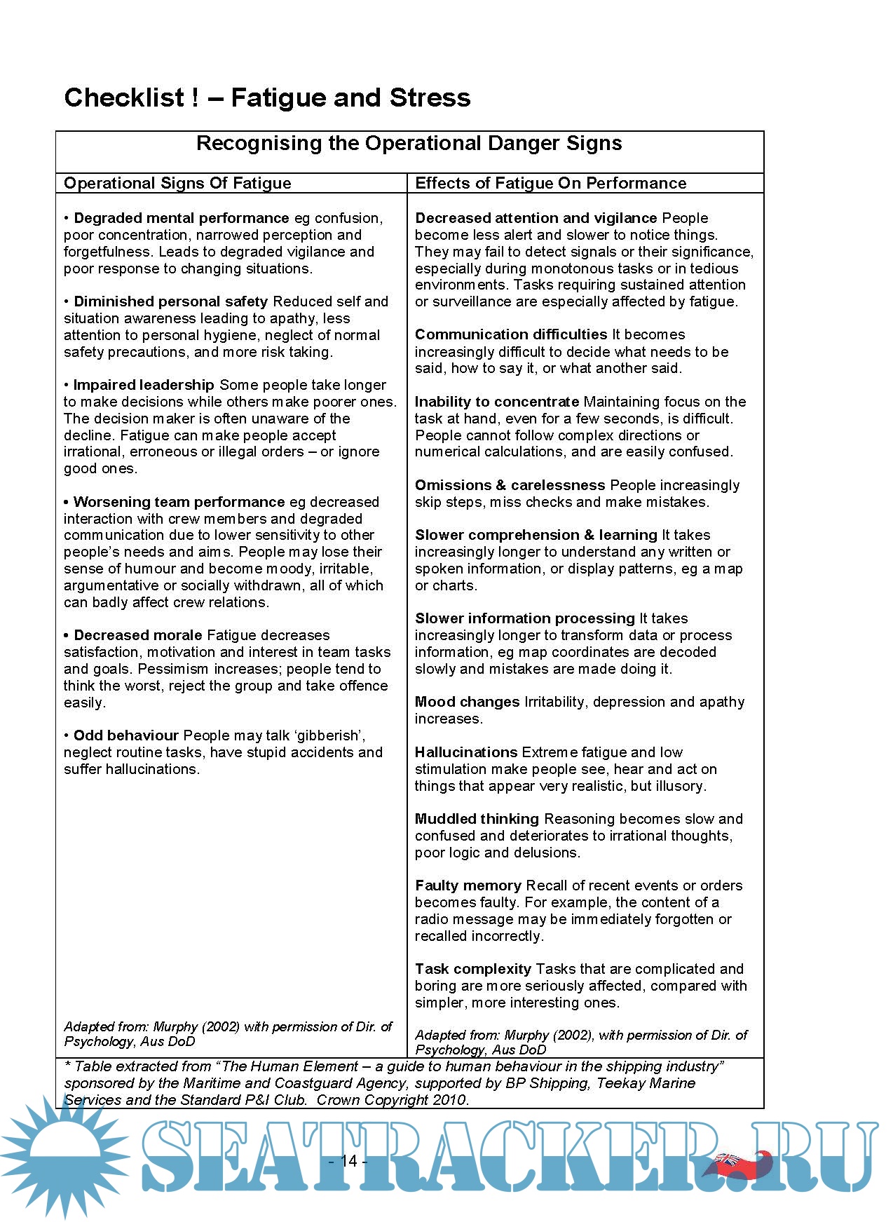 1. Human Element Guidance Part 1, MGN 505 (25 pages), Published 31 March 2014 - Last updated 6 January 20172. Human Element Guidance Part 2, MGN 520 (17 pages), Published 5 January 2017