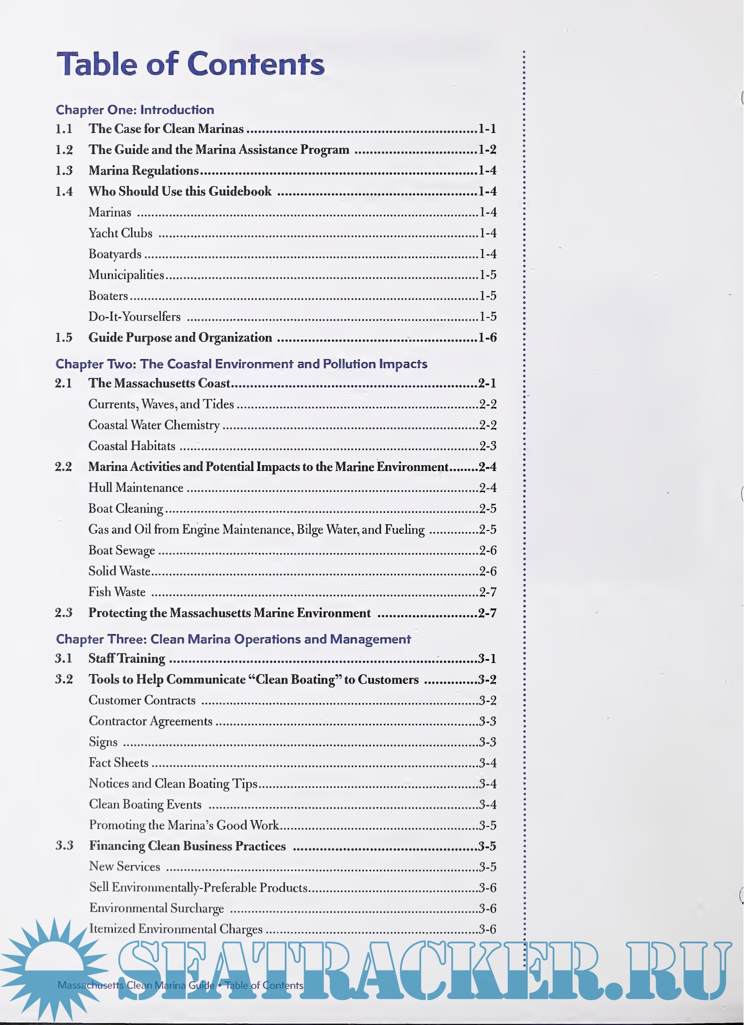 Year: 2001 Language: english Author: Durand B. (ed.) Genre: Guide Publisher: Epsilon Associates, Inc. Format: PDF Quality: Scanned pages Pages count: 190 Description: Part of today's active boating and marina industry in Massachusetts is sound stewardship of our oceans, harbors, and wetlands. Given the right tools and knowledge, marina operators, boaters, and the general public can all help reduce or eliminate pollution caused by using and maintaining boats.The result? Cleaner water for boaters, the public, and wildlife to enjoy. The Massachusetts Clean Marina Guide contains many useful recommendations that have been developed in conjunction with local and national professionals involved in the operation of marinas and boat maintenance. We hope you find this Guide informative and useful. Please share the information with others and feel free to distribute the fact sheets included with the Guide.