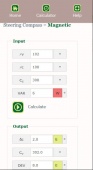 The strong point about this app is the fact that the calculation result is not simply showing the output values, but also the calculation details step by step, so that you can learn and understand what happens. Also a plot is shown explaining the difference between true north, magnetic north and compass north. Make sure you understand this well.