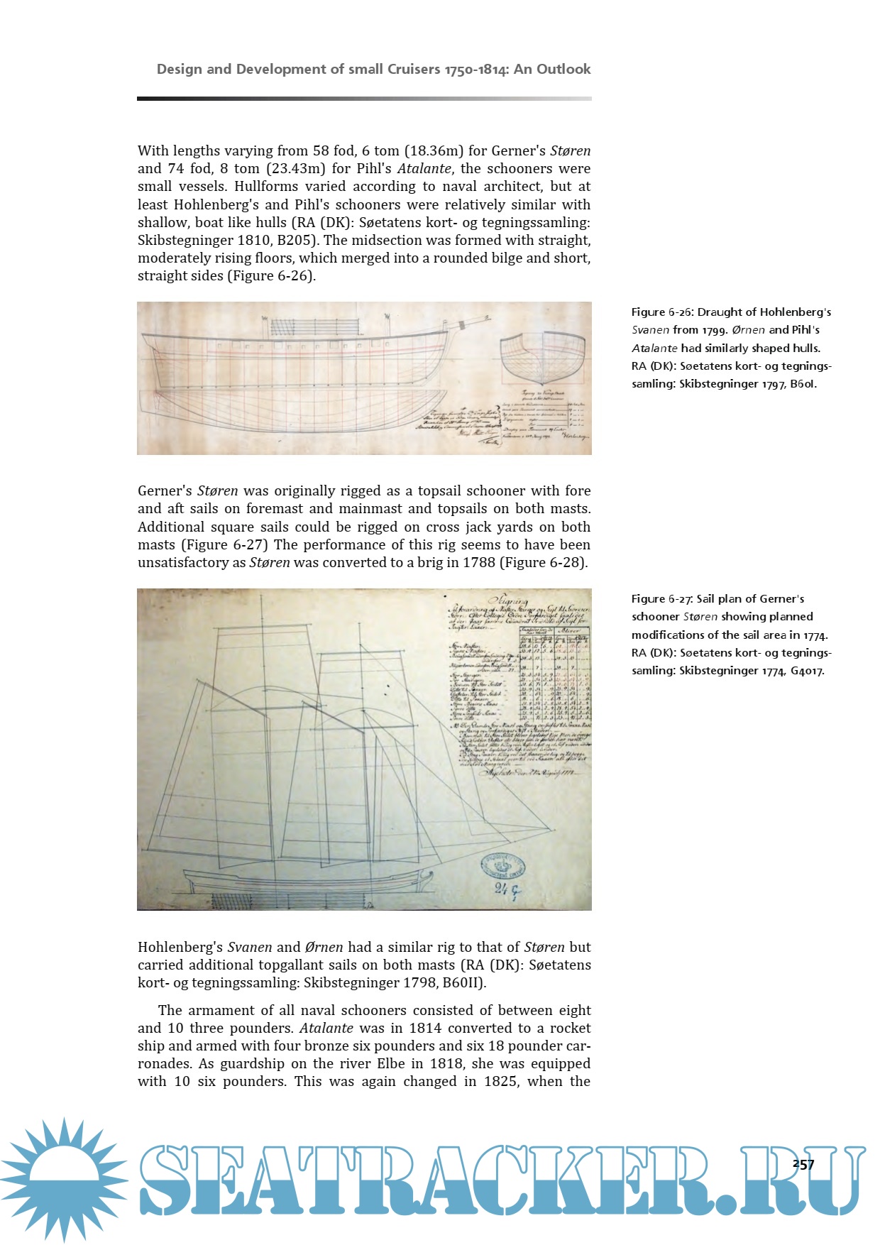 Year: 2008 Language: english Author: Auer J. Genre: Research papers Publisher: University of Southern Denmark Format: PDF Quality: eBook Pages count: 405 Description: In common perception sailing warships of the 17th and 18th century were large and prestigious ships of the line, just as HMS Victory, the flagship of Admiral Nelson at Trafalgar. It is true that most naval battles were decided by these ships, but the sailing navies also included a whole range of smaller vessels which operated outside of the line of battle. One example are cruisers, warships mainly built for cruising against enemy ships or privateers. These vessels were small, uncomfortable and far less prestigious than ships of the line, but most famous naval officers began their career on such vessels. Nelson's first command was the small brig Badger, and the infamous Danish naval hero Tordenskjold was first put in charge of the 12m long Ormen. This study investigates the origins, the development and the use of the smallest naval cruisers in the Danish navy of the 17th and 18th century. These cruisers were frequently referred to as fregat and snau, frigate and snow. Both terms originally described privateering vessels used on the North Sea coast of Flanders during the 80 Years War. In order to determine how the later naval cruisers in Denmark related to the ships they took their names from, a chapter was dedicated to the origins and development of the Flemish frigate and snow. Additional info: Докторская диссертация датского ученого (на английском языке) посвящена истории строительства и использования в боевых действиях малых разведывательных и патрульных фрегатов в датском флоте в период с 1650 по 1750 годы.