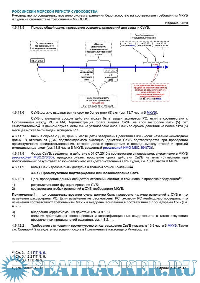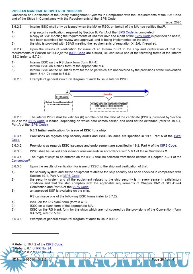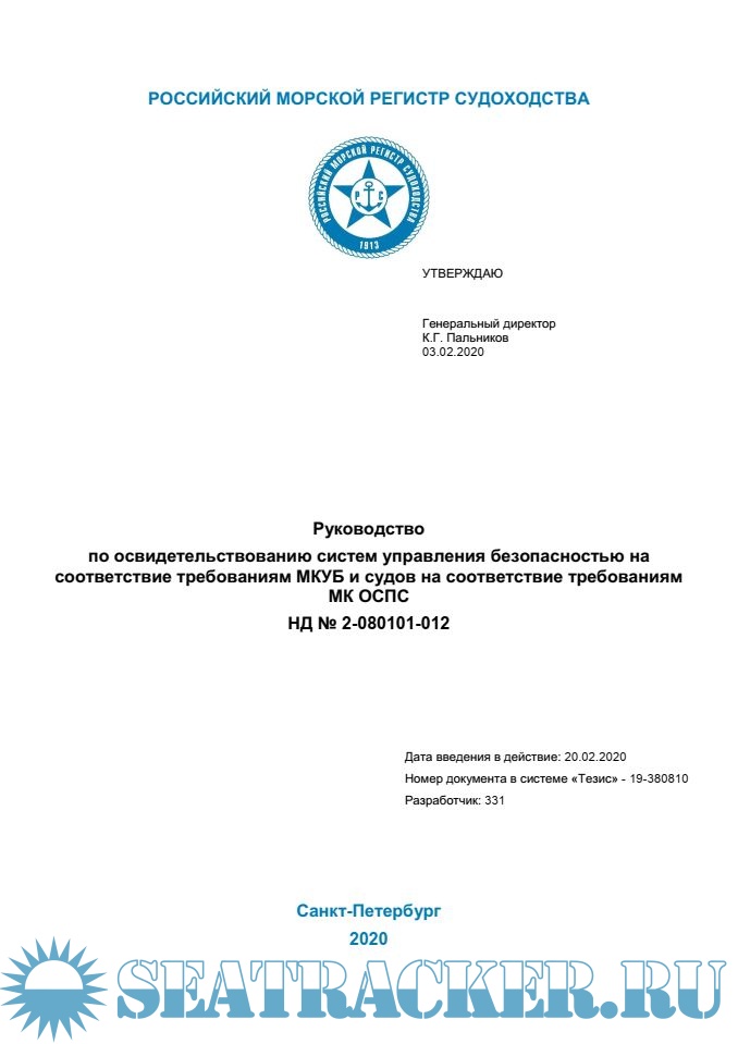 - Руководство по освидетельствованию систем управления безопасностью на соответствие требованиям МКУБ и судов на соответствие требованиям МК ОСПС (2-080101-012);- Guidelines on Certification of the Safety Management Systems in Compliance with the Requirements of the ISM Code and of the Ships in Compliance with the Requirements of the ISPS Code (2-080101-012E).