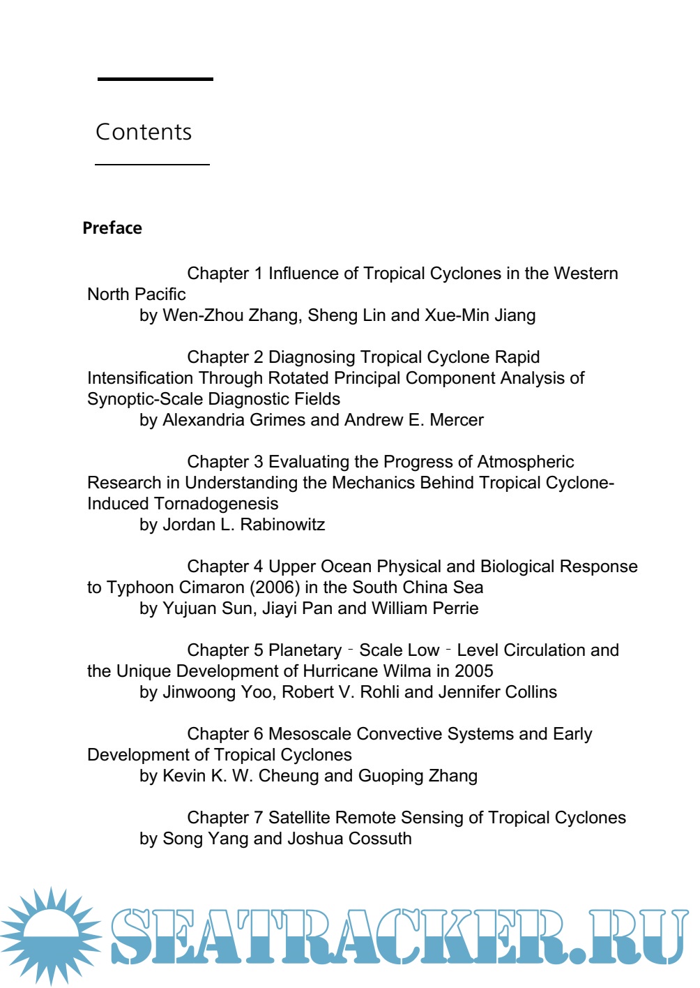 Year: 2016 Language: english Author: Lupo A.R. Genre: Handbook Publisher: ITexLi ISBN: 9535127020 Format: PDF Quality: Scanned pages Pages count: 251 Description: Today, tropical cyclones continue to bring destruction, as well as disruption, to societies that are exposed to their threat. This book represents a compilation of recent cutting-edge research on tropical cyclones and their impacts from researchers at many institutions around the world. This book contains new looks at tropical cyclone dynamics, the use of satellite-based remote sensing in the detection and climatology of tropical cyclones, and the modeling and prediction of tropical cyclones as well as their associated impacts. This book would make a nice addition to any course on tropical meteorology highlighting topics of interest in recent research on this topic.