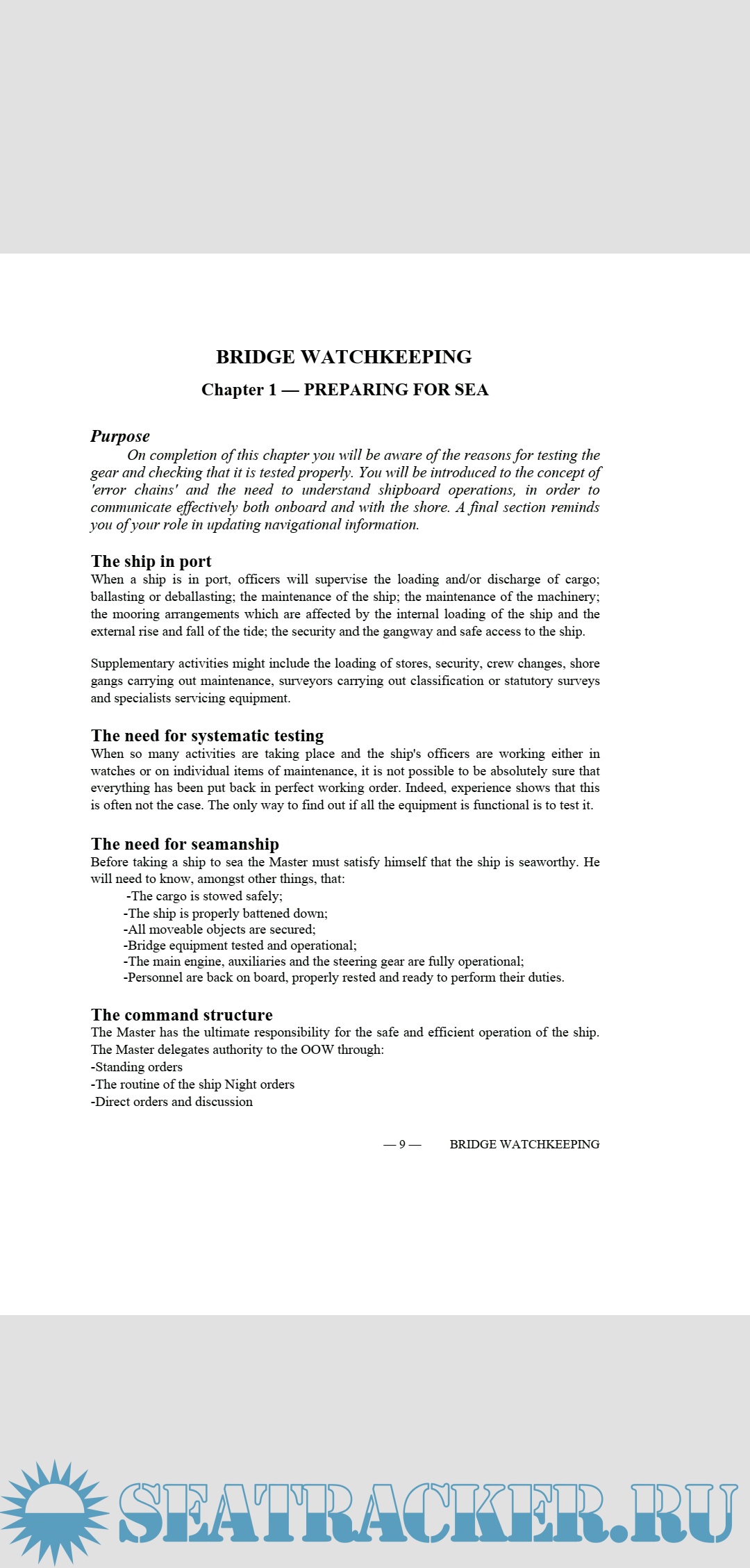 Description: Welcome to this study guide on Bridge Watchkeeping. It has been prepared in response to a