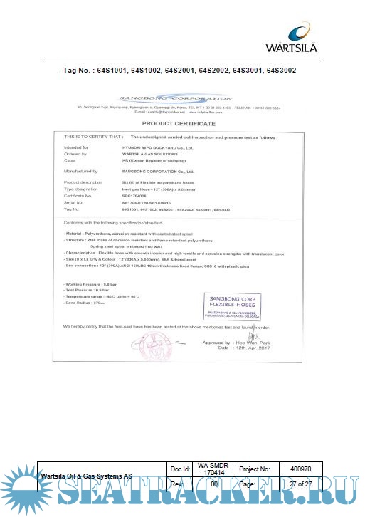 Description: Manual for Flexible Hoses and Quick Couplings of 38,000 m³ LPG/NH3 Carrier.