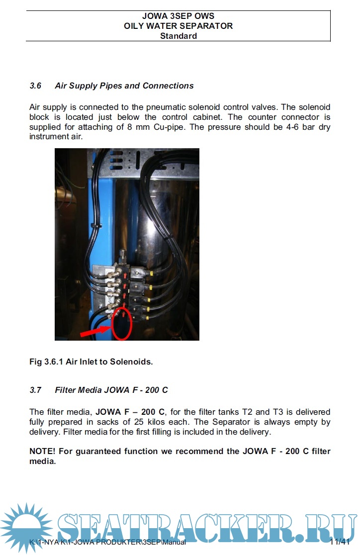 Description: Bilge Water Separator Operating Instruction and Technical Manual "JOWA 3SEP OWS"