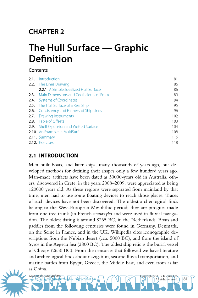 Year: 2019 Language: english Author: Adrian Biran Genre: Textbook Publisher: Butterworth-Heinemann Edition: 1 ISBN: 978-0-08-100328-2 Format: PDF Quality: eBook Pages count: 526 Description: Geometry for Naval Architects is the essential guide to the principles of naval geometry. Formerly fragmented throughout various sources, the topic is now presented in this comprehensive book that explains the history and specific applications of modern naval architecture mathematics and techniques, including numerous examples, applications and references to further enhance understanding. With a natural four-section organization (Traditional Methods, Differential Geometry, Computer Methods, and Applications in Naval Architecture), users will quickly progress from basic fundamentals to specific applications. Careful instruction and a wealth of practical applications spare readers the extensive searches once necessary to understand the mathematical background of naval architecture and help them understand the meanings and uses of discipline-specific computer programs: - Explains the basics of geometry as applied to naval architecture, with specific practical applications included throughout the book for real-life insights - Presents traditional methods and computational techniques (including MATLAB) - Provides a wealth of examples in MATLAB and MultiSurf (a computer-aided design package for naval architects and engineers) - Includes supplemental MATLAB and MultiSurf code available on a companion site Additional info: Adrian Biran, born Birbanescu, received a Cum laude Diploma of Engineering, in the field of ship engineering, from the Bucharest Polytechnic Institute, and Master of Science and Doctor of Science degrees from the TECHNION — Israel Institute of Technology, the latter two with theses related to software for Marine Engineering and Naval Architecture. After graduating he worked as Design Engineer, Chief of Department and Project Leader at IPRONAV — the Institute for Ship Design, in Bucharest. In continuation he managed the design office of the Bucharest Studios and worked as Project Leader at IPA — the Institute for Automation Design, in Bucharest. In Israel Adrian Biran worked as a Senior Engineer at the Israel Shipyards, Haifa, and as Research Fellow and Research Engineer at the Technion R&D Foundation. In parallel with the above activities Adrian Biran served as a project instructor at the Military Technical Academy, in Bucharest, and at the Beersheba University. He has been for many years an adjunct teacher at the TECHNION — Israel Institute of Technology. Adrian Biran is the author of several technical papers on various subjects including also Naval Architecture.
