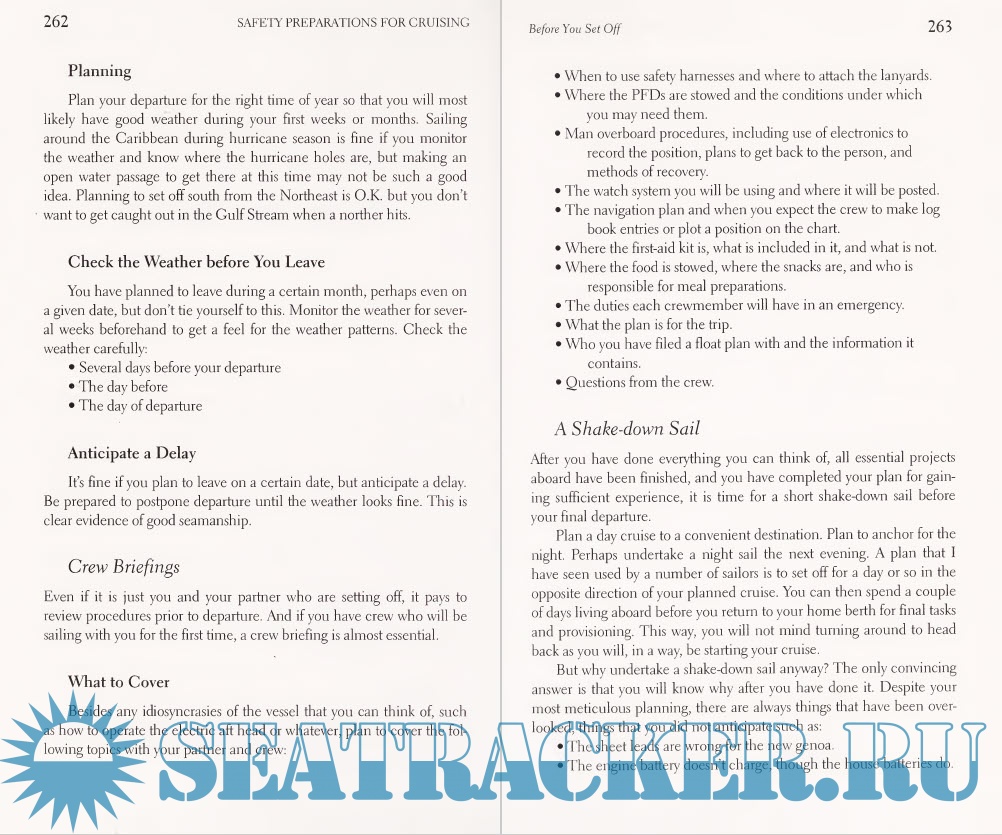 Year: 1998 Language: english Author: Jeremy R. Hood Genre: Handbook Publisher: Sheridan House Edition: First ISBN: 978-1574090222 Format: PDF Quality: Scanned pages Pages count: 278 Description: Safety Preparations for Cruising begins with a discussion of general preparations and proceeds to comprehensively cover safety material related to every facet of cruising. Topics include the structural integrity of the vessel and its potential for breakdowns, basic skills, dangerous situations and more. Each chapter begins with a real-life experience introducing the topic covered and concludes with a valuable checklist summarizing the discussion and measuring strengths and weaknesses in ourselves and our vessels. This primer on safety is essential for anyone fitting out or preparing for offshore cruising. Most sailors go to sea without prior knowledge of the cruising lifestyle and its demands. This can result in conditions ranging from the merely inefficient to the truly tragic. In Safety Preparations For Cruising, Jeremy Hood utilizes his years of personal experience to teach safety measures and prudent seamanship to would-be cruisers so they can set out on a vessel designed or altered with their well-being in mind, aware of potential risks, familiar with possible solutions, and possessing increased self-reliance with which to minimize or resolve problems. The many and essential topics include "preparing yourself"; hull and deck; spars and rigging; engines, transmissions and propellers; steering; safety below deck; navigation; communications; safety harnesses and PFDs; heavy weather; "man overboard"; taking on water; abandoning ship; ground tackle; going aground; medical emergencies; fire; spares and repairs; and "before you set off". No sea-going novice one should set off without first studying Safety Preparations For Cruising. -- Midwest Book Review No sea-going novice should set off without first studying Safety Preparations for Cruising. --The Midwest Book Review, May 1997 About the Author Jeremy R. Hood has sailed over 30,000 ocean miles as skipper, including two Atlantic crossings. Born in England, he got his early sailing experience around the North Sea and in the English Channel. He now owns a yacht brokerage company, Blue Water Cruising, in Clear Lake Shores, Texas, and does consulting for offshore sailors. An experienced delivery skipper, he also teaches navigation and seamanship, and lectures at Cruising World/West Marine Safety at Sea Seminars.