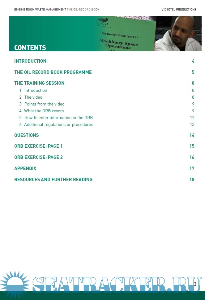 Year: 2007 Language: english Author: Pat Mitchell Genre: Guide Publisher: VIDEOTEL Format: PDF Quality: eBook Pages count: 24 Description: OBJECTIVES The guide will enable an engineer officer such as yourself to use the video as the basis for a short training session for a small group of engine room personnel. Those taking part will: • Understand the purpose of the Oil Record Book (ORB) • Know what the book covers and why • Be able to complete the book correctly • Identify record keeping issues specific to your ship